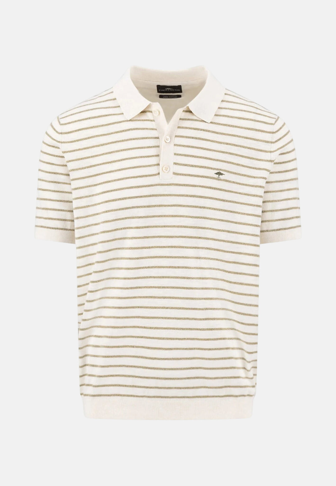 Striped Cotton Linen Fine Knit Polo Shirt New Off-White