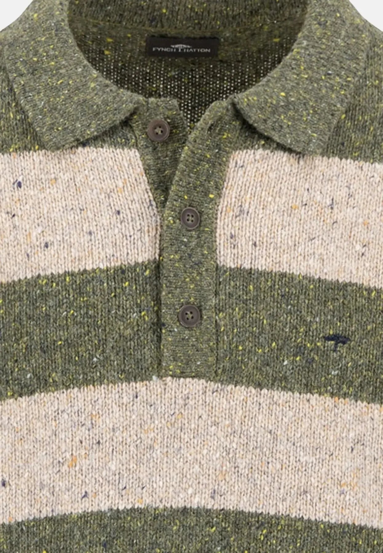 fynch-hatton-Donegal Wool Striped Polo Collar Knit Dark Ivy