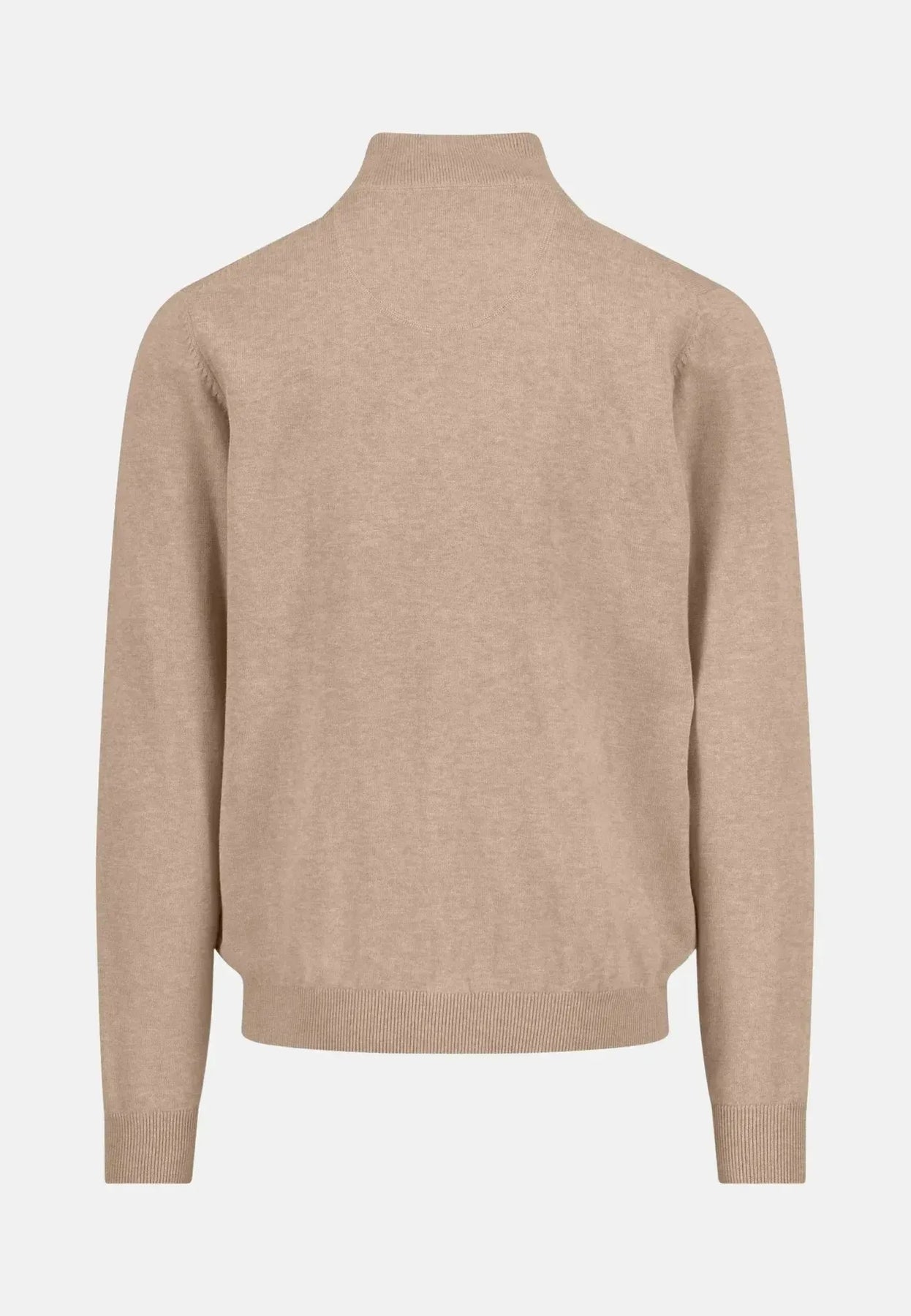 fynch-hatton-Fine Knit Cotton 1/4 Zip Taupe