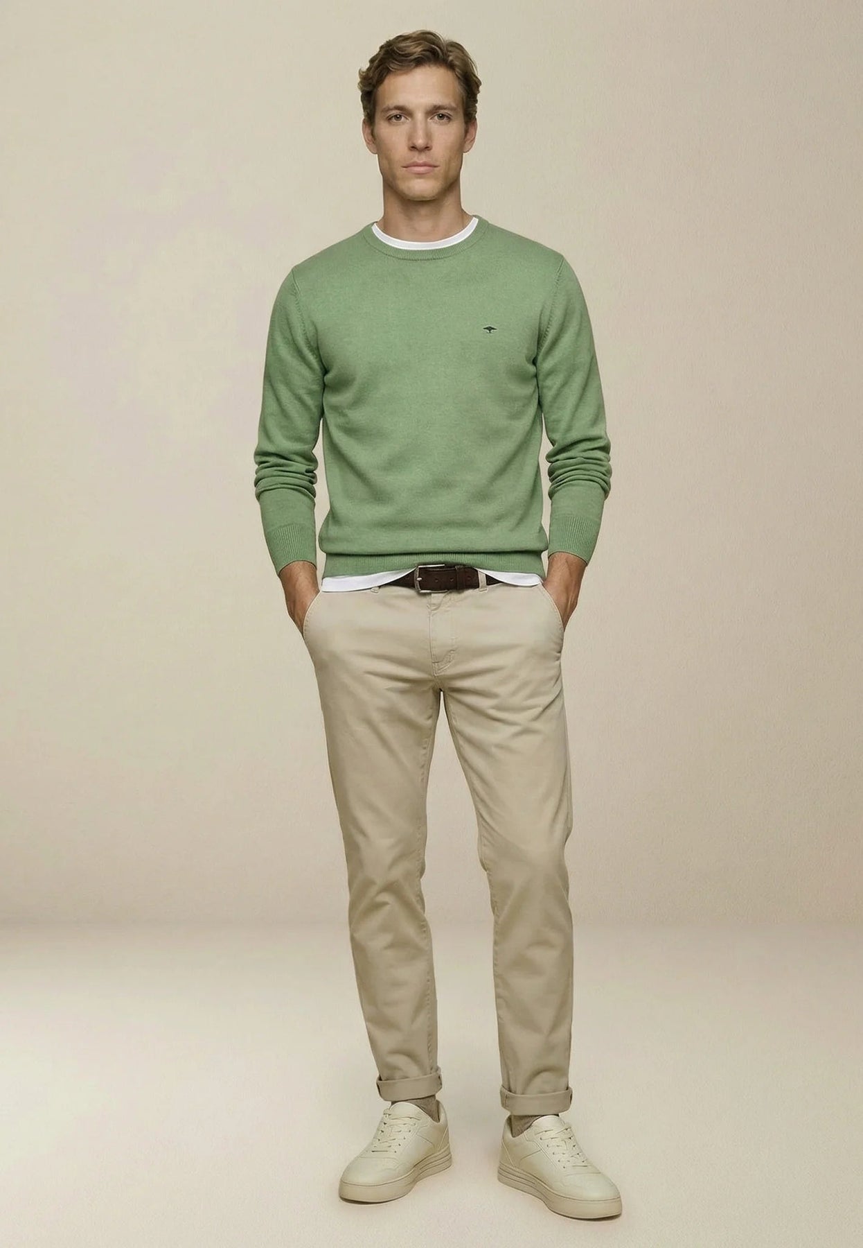 This classic fine-knit sweater made of pure cotton impresses with its high level of comfort and stylish simplicity. The crew neck, combined with the finely knitted fabric, ensures a comfortable fit and pleasant lightness. The solid color design is versatile and easy to style – whether paired with a casual shirt, worn relaxed over a t-shirt, or worn classically on its own. A subtle logo detail on the chest adds a signature touch and underscores the sweater's timeless appeal. Ideal for your polished casual style with a focus on lasting quality.