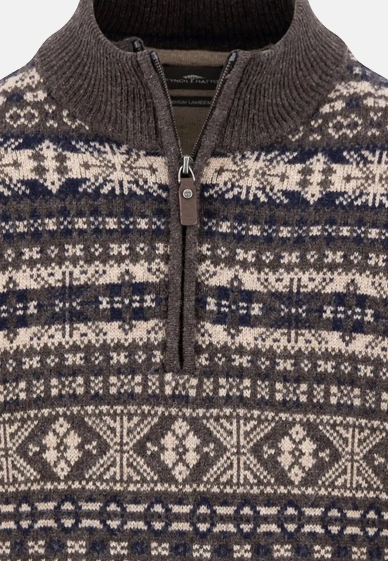 fynch-hatton-Lambswool Jacquard 1/4 Zip Knit Dark Chocolate