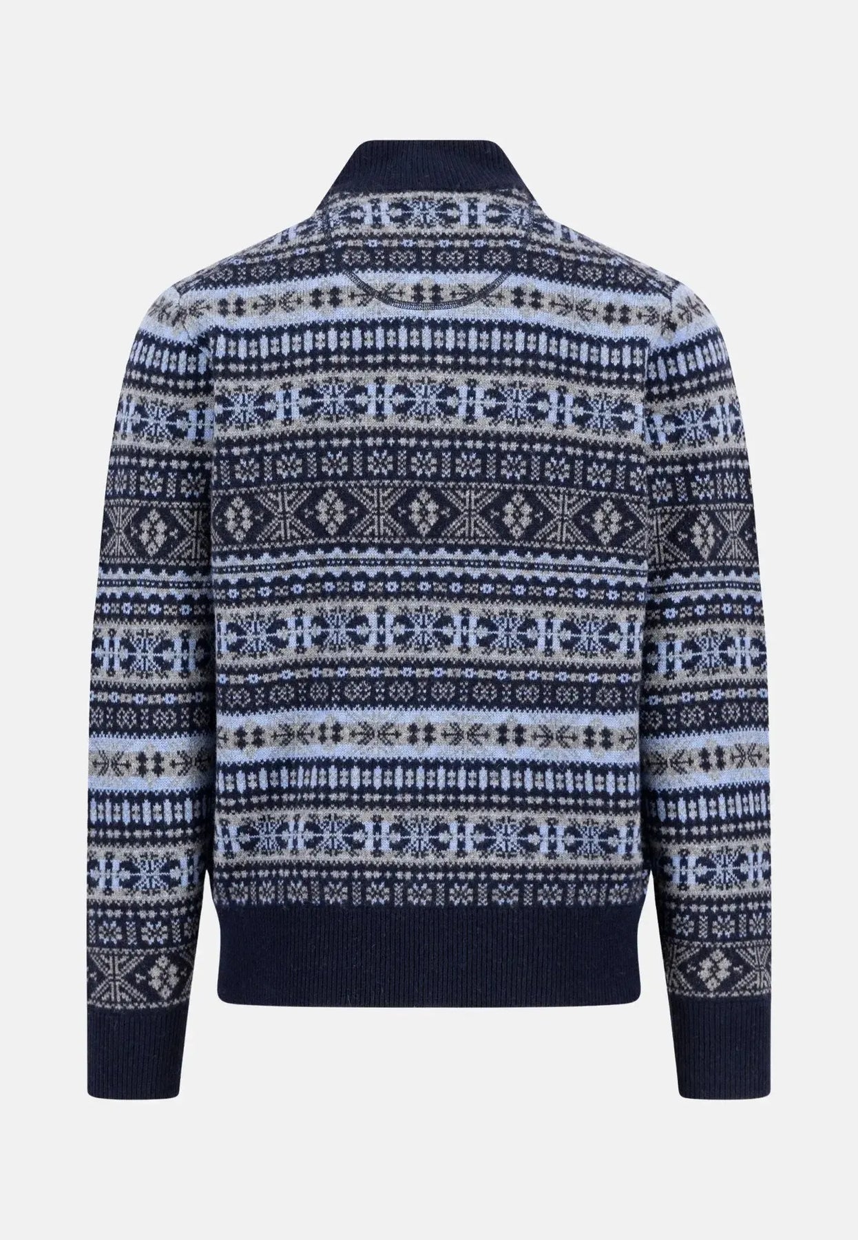 Lambswool Jacquard 1/4 Zip Knit Navy