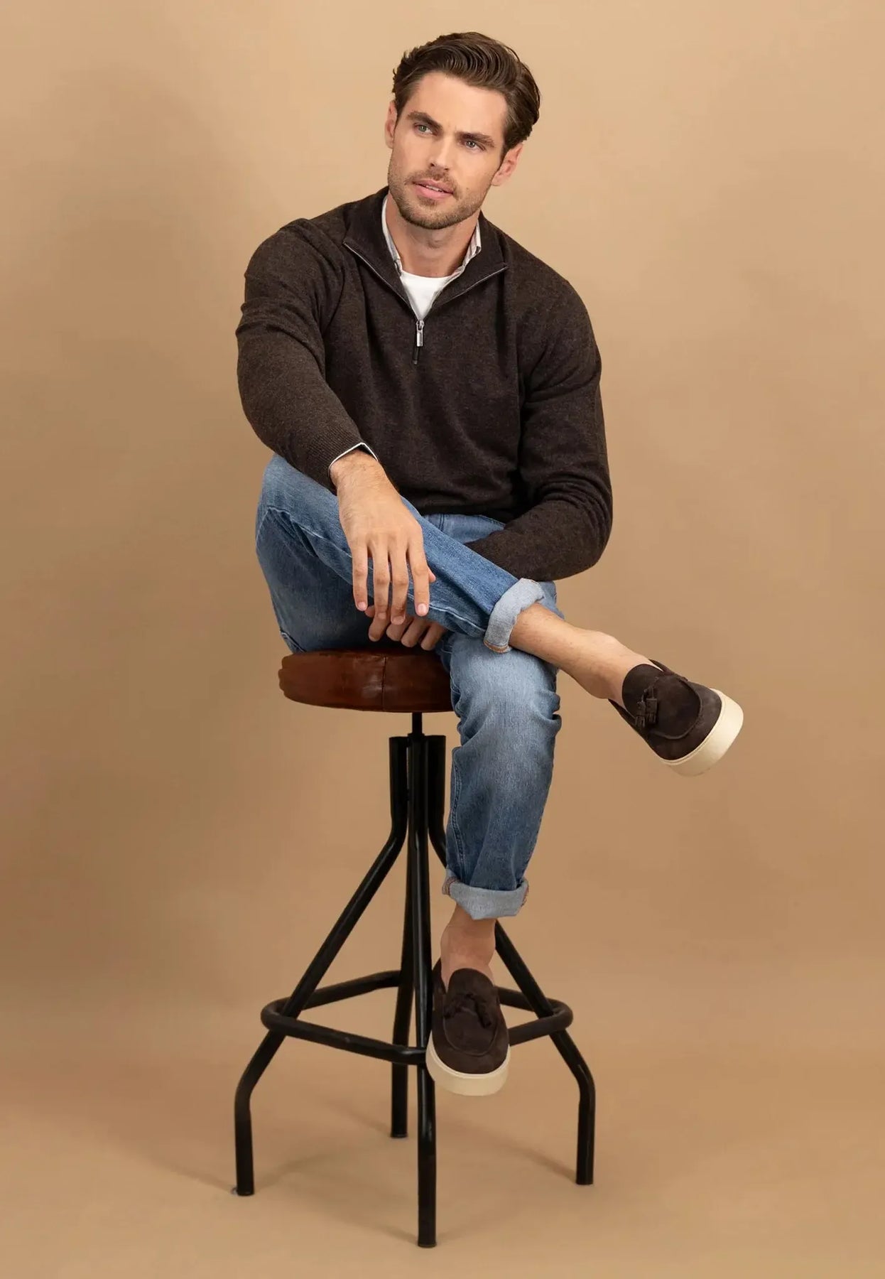 Pure Lambswool 1/4 Zip Knit Dark Chocolate