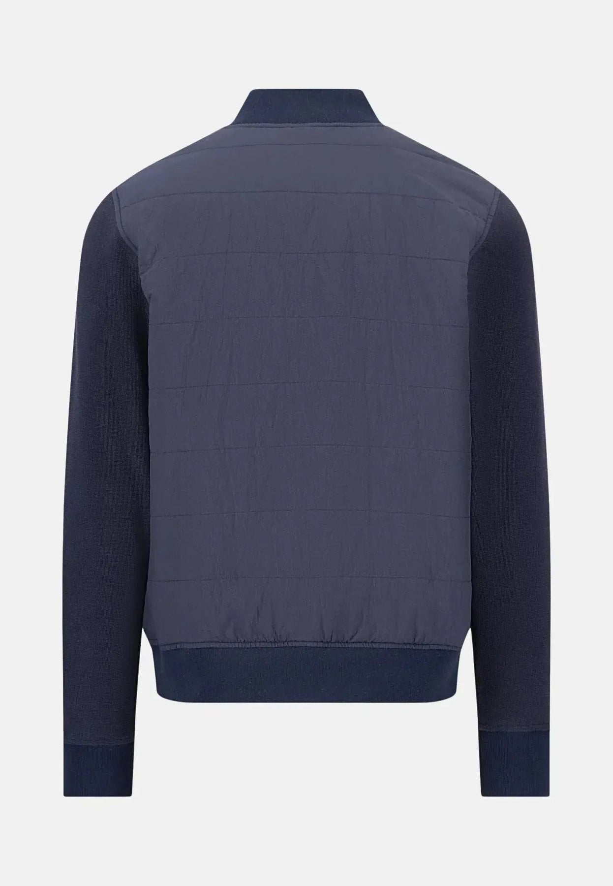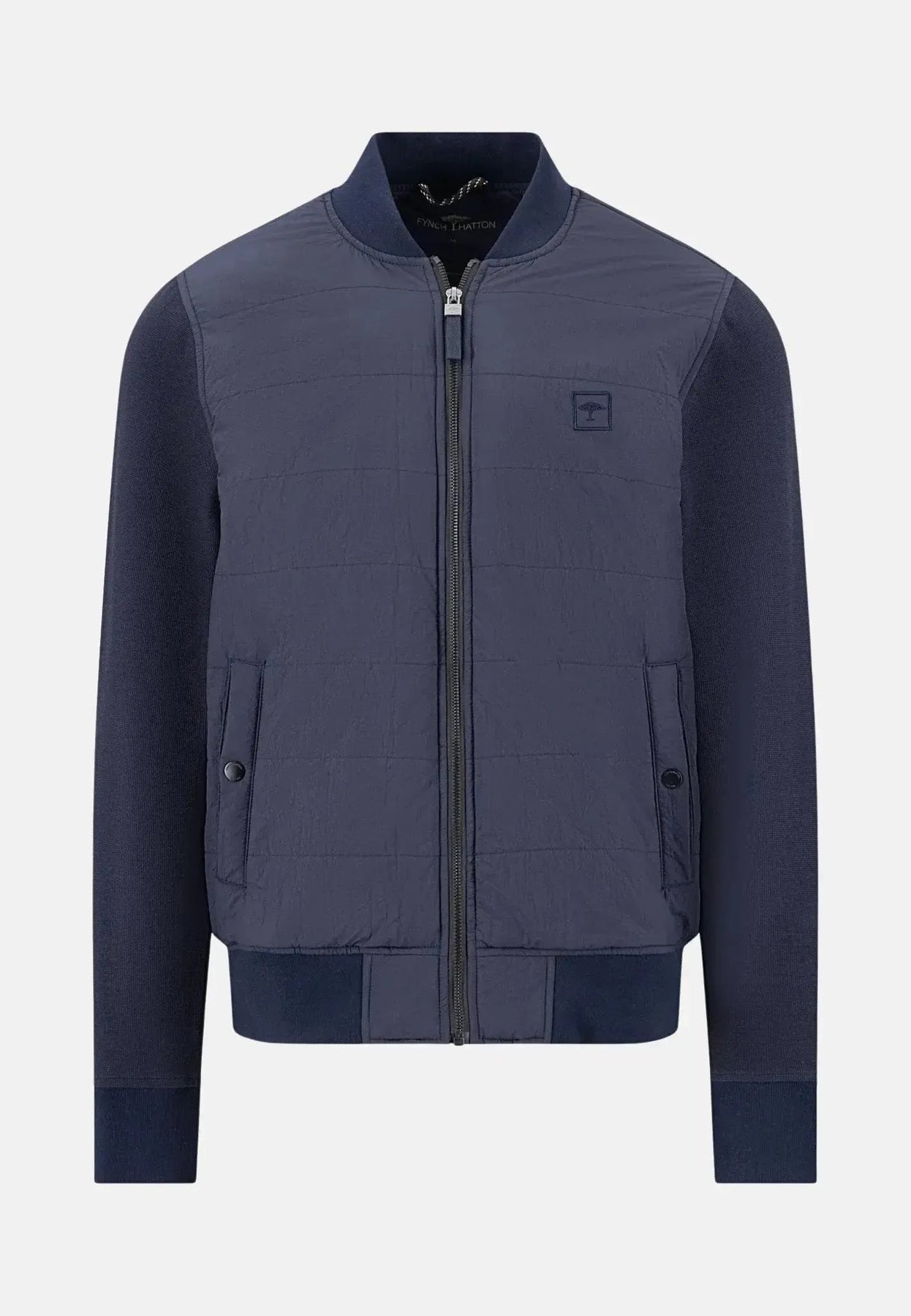 The combination of smooth quilted look and structured knit sleeves makes this bomber jacket a sporty-modern eye-catcher with a functional character. The woven nylon gives the front a lightweight, durable quality, while the soft polyester-cotton blend sleeves ensure comfortable wear. The ribbed collar, hem, and cuffs emphasize the casual style, while the subtle FYNCH-HATTON logo on the chest adds a signature touch. Ideal for transitional weather, this jacket will reliably accompany you through your everyday life.