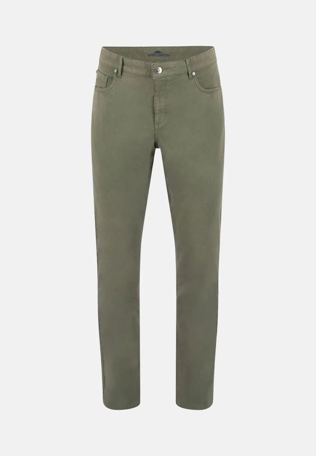 fynch-hatton-Stretch Cotton Straight Leg Chinos Dusty Forest
