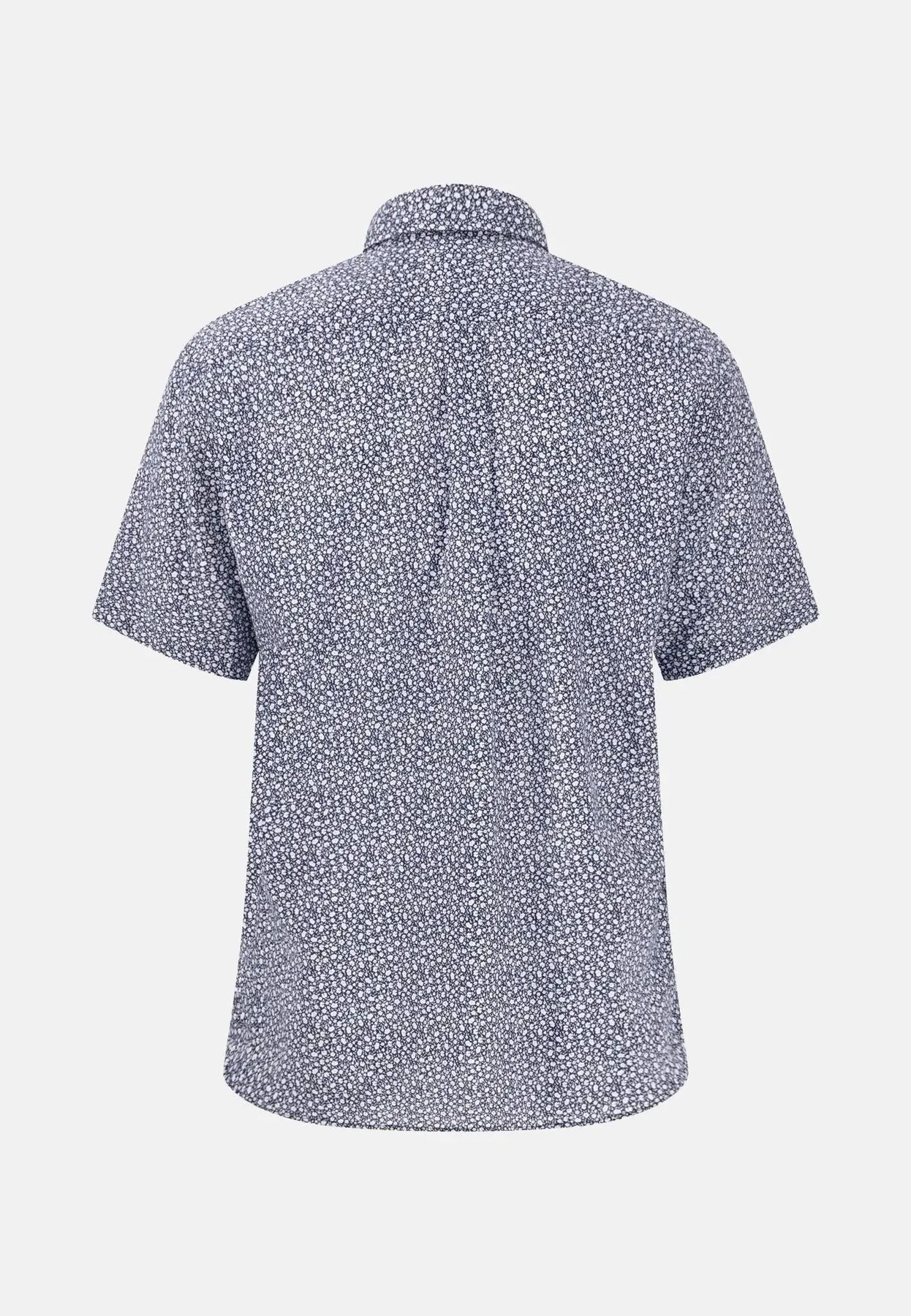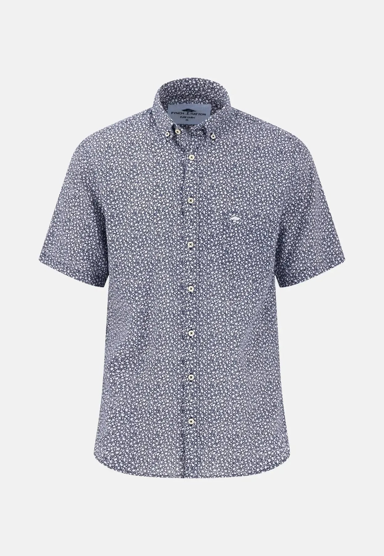 fynch-hatton-Allover Pattern Linen Short Sleeved Shirt Navy