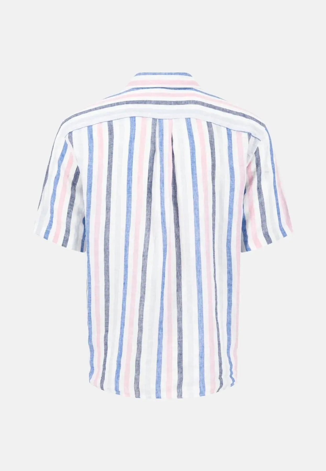Colourful Striped Linen Button Down Short Sleeved Shirt Peony