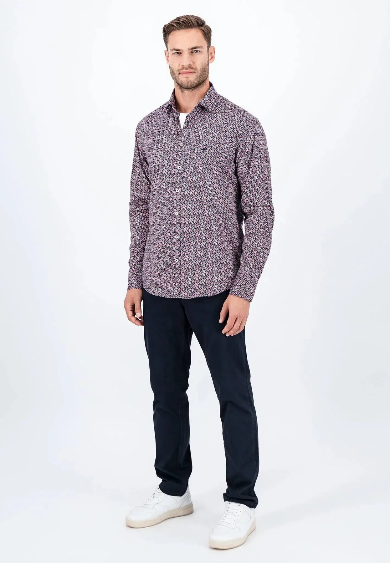 This kent collar shirt with a modern print offers you the ultimate comfort for every day. The soft material feels pleasant on the skin and ensures a comfortable fit, even when worn for longer periods. The subtle pattern gives your outfit a stylish touch without being obtrusive. The precise workmanship and the high-quality buttons underline the first-class quality of this shirt. Whether in the office, at dinner or in your free time - you always cut a good figure with this shirt.
