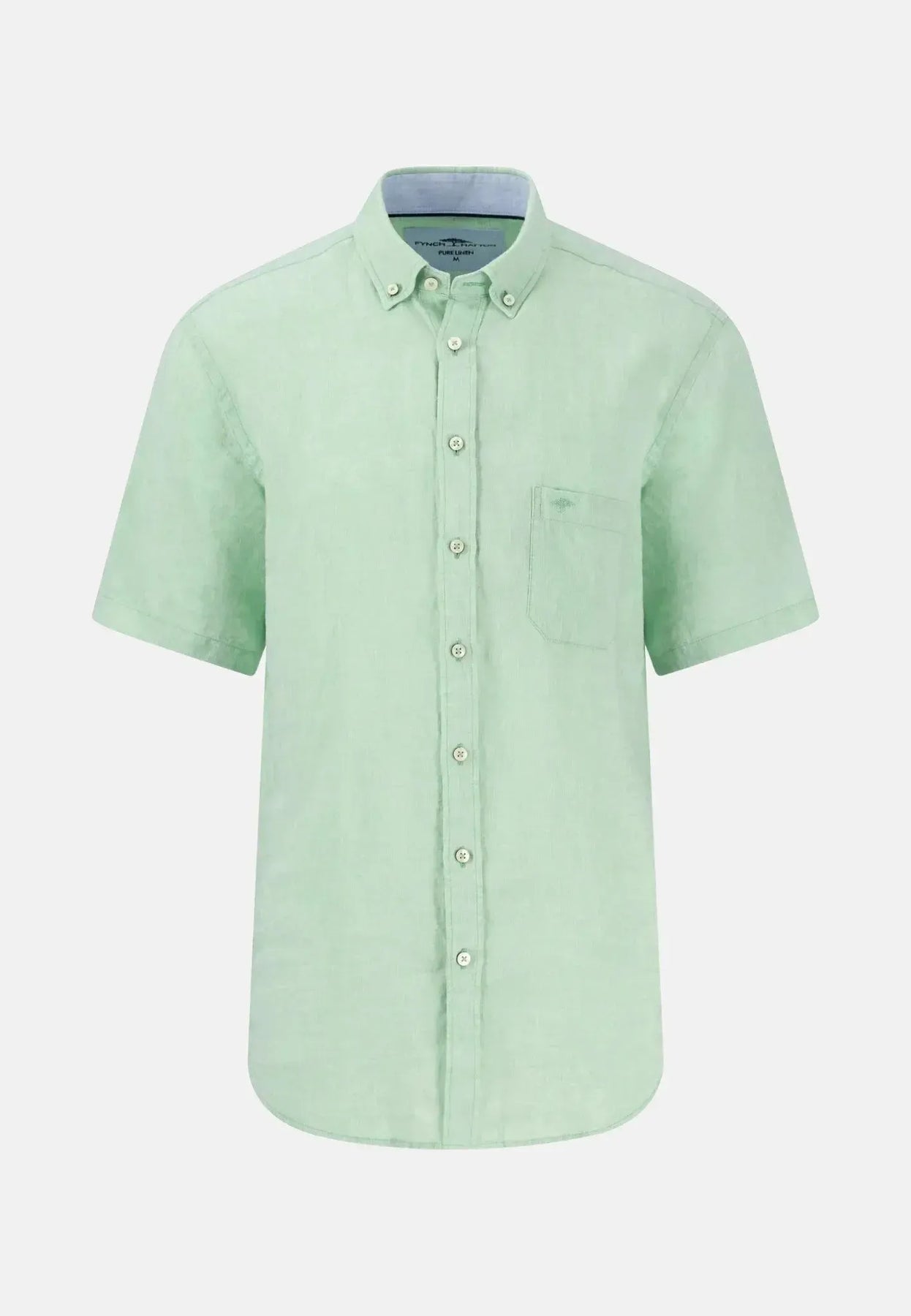 Premium Linen Button Down Short Sleeved Shirt Turf Green