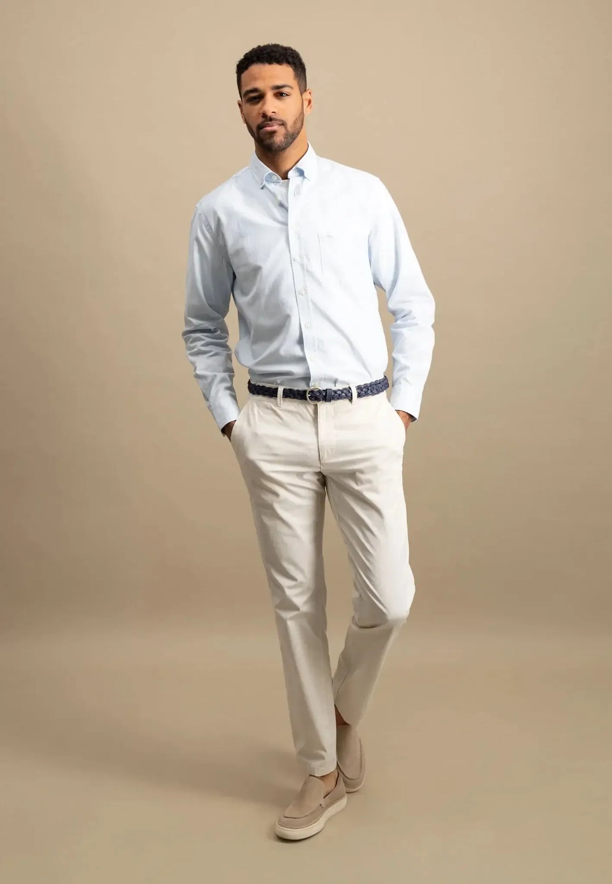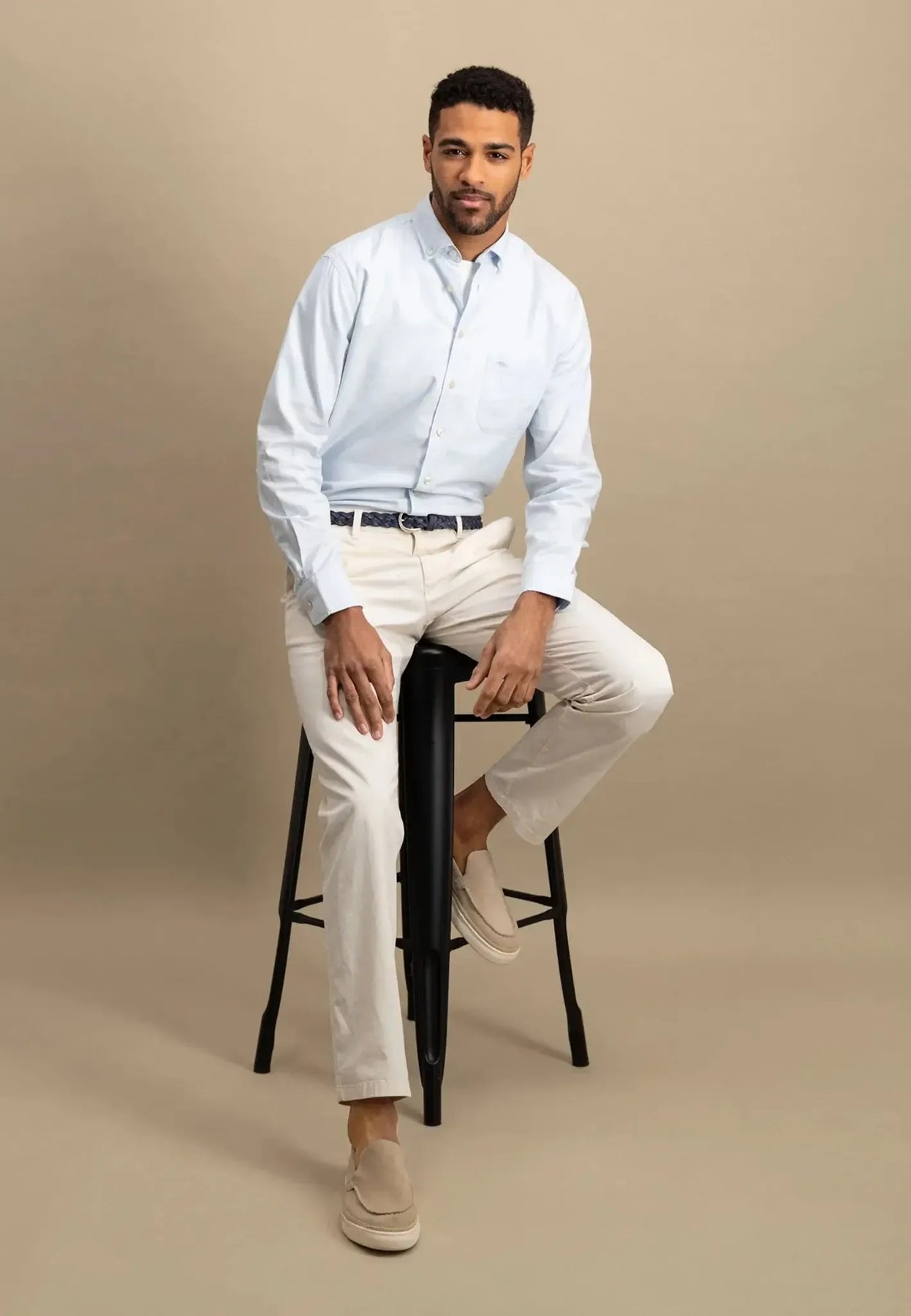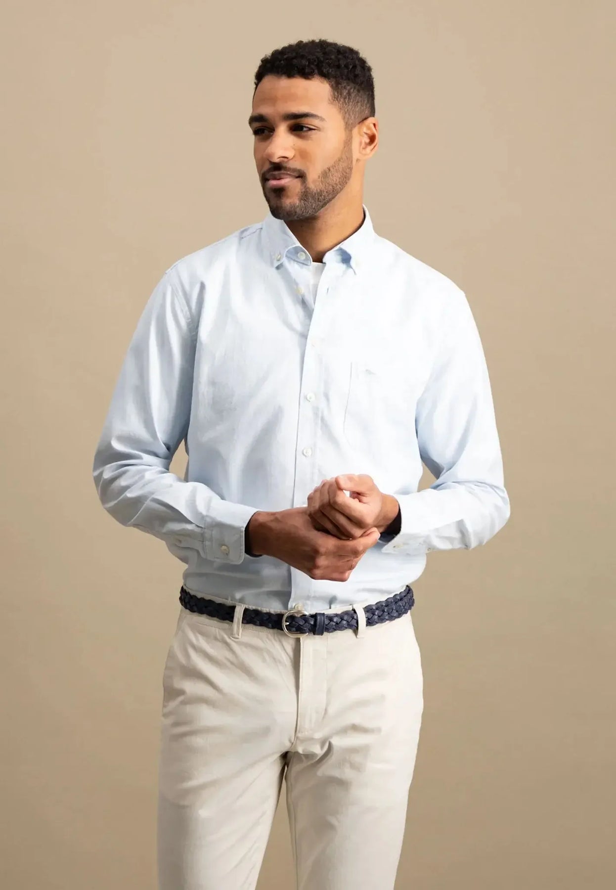 Fynch-Hatton's oxford shirt relies on a classic design and timeless elegance to be an essential style for the brand. This iteration is in a fresh seasonal colour and constructed with a button down collar, continuous button placket and adjustable 1-button cuff. It is finished with our iconic Fynch-Hatton Acacia tree logo embroidery on left crest pocket.