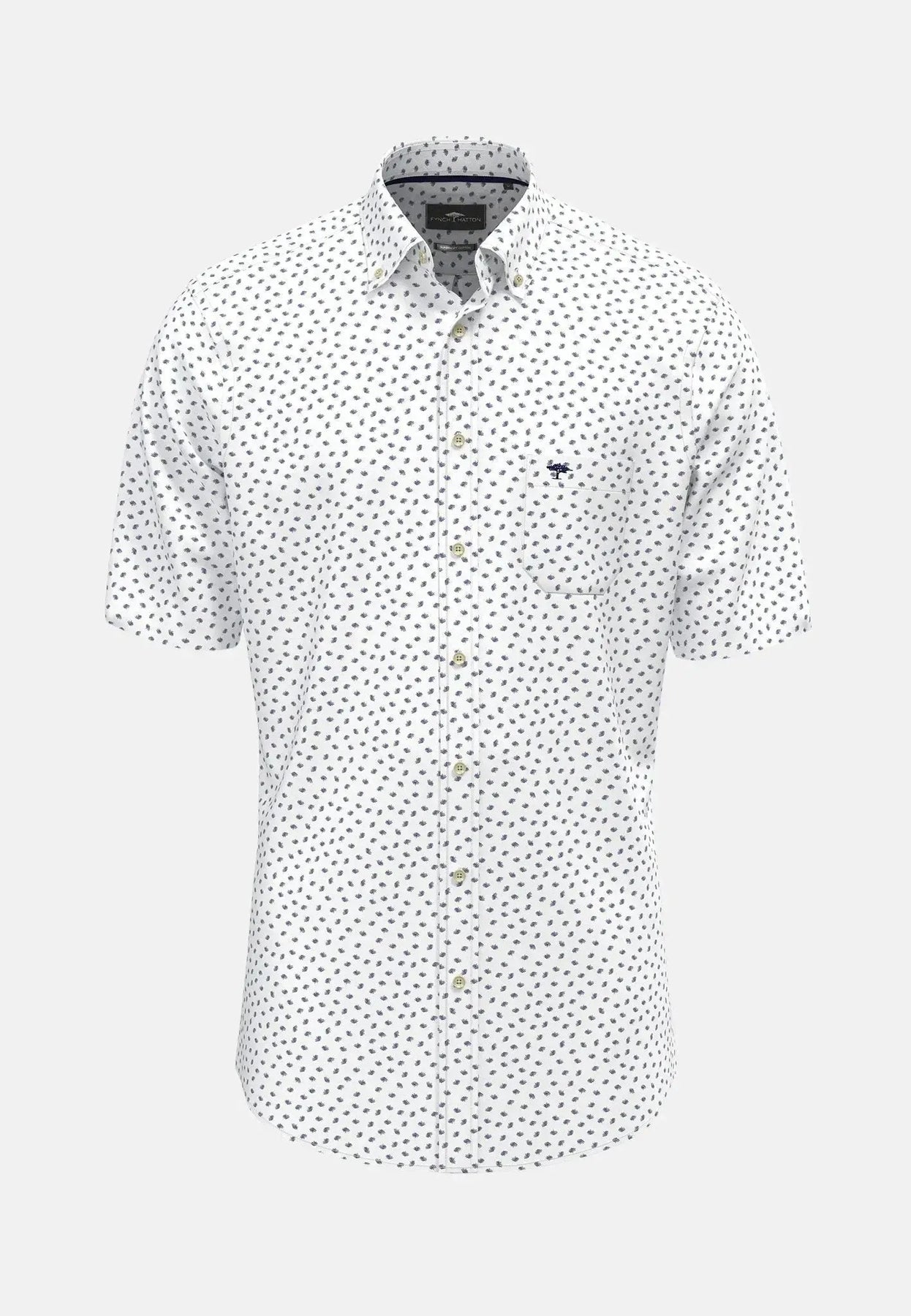 This short-sleeved shirt made of pure cotton with a fashionable all-over seeksucker print adds a refreshingly modern touch to your look. The lightweight, breathable material ensures a high level of comfort, while the delicate pattern adds charm and style to your outfit. The high-quality workmanship underscores the timeless quality of this design, which can be combined with both casual and elegant styles. A must-have for anyone who wants to add a fashionable touch.