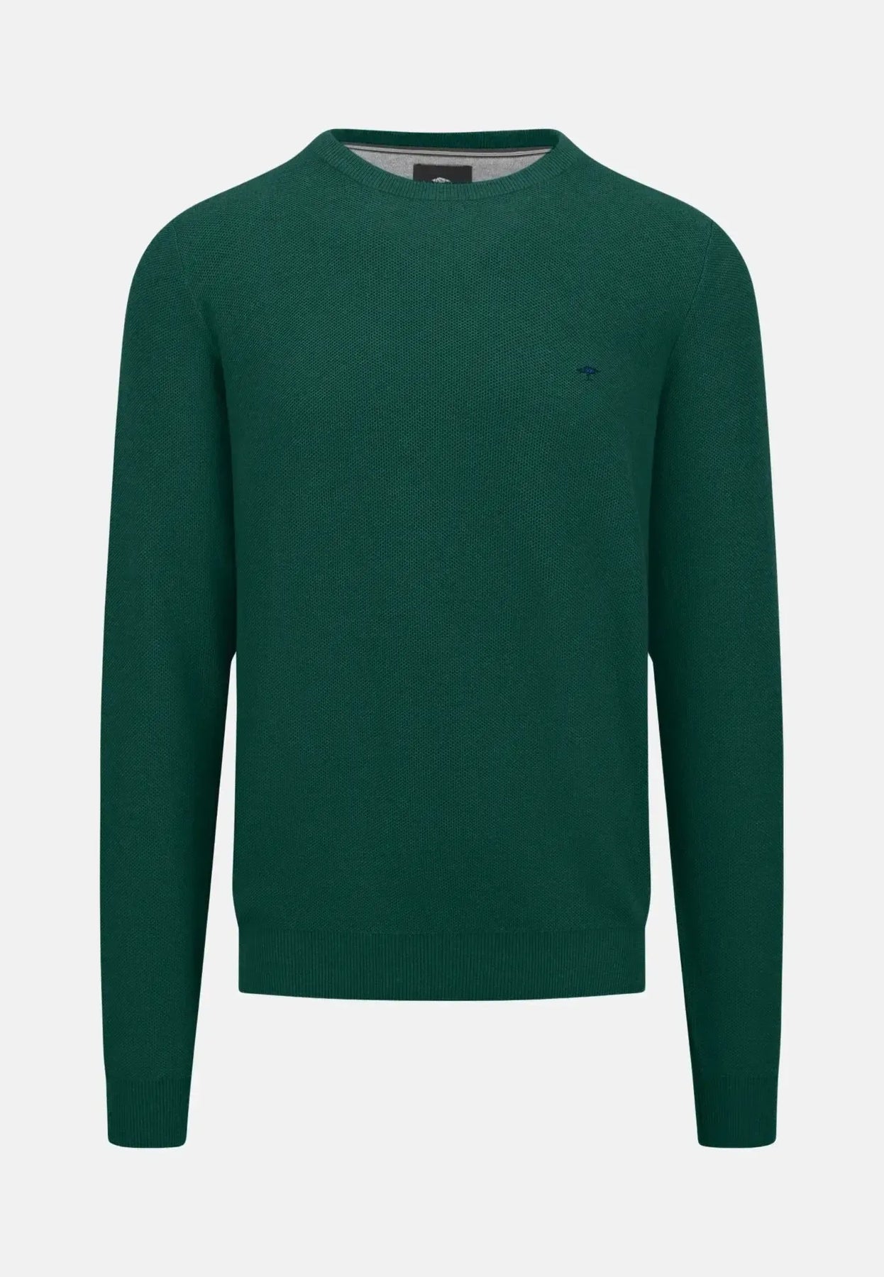 This casual fit crewneck cotton knit is a seasonal wardrobe staple. Made from a woven structured cotton knit with a thin ribbed neck and ribbed cuffs and hem it is perfect for both the evening and during the day and is finished with our iconic Fynch-Hatton Acacia tree logo embroidery on left crest.