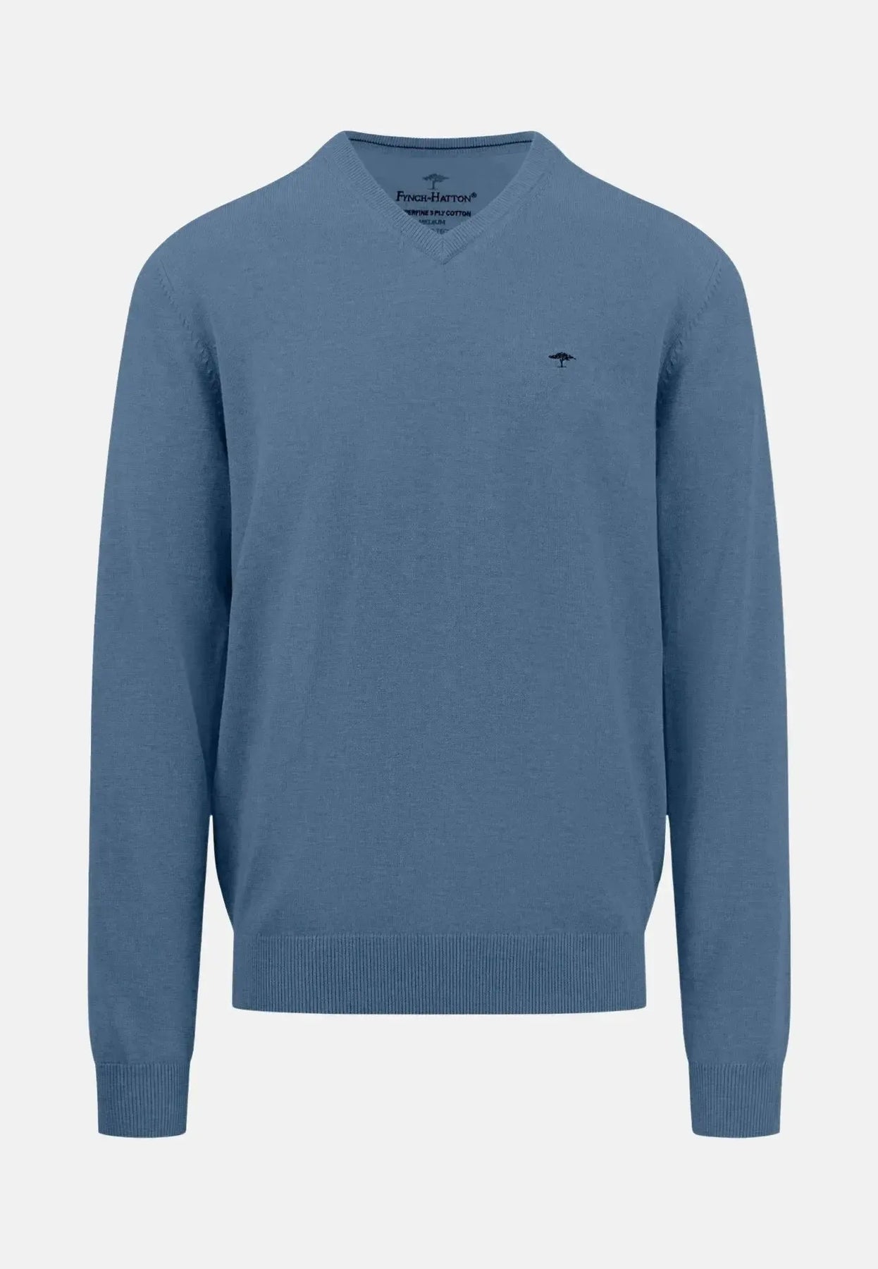 This casual fit v-neck superfine cotton knit is a wardrobe staple. Made from superfine knit soft cotton with a thin ribbed neck and ribbed cuffs and hem it is perfect for both the office and home and is finished with our iconic Fynch-Hatton Acacia tree logo embroidery on left crest.