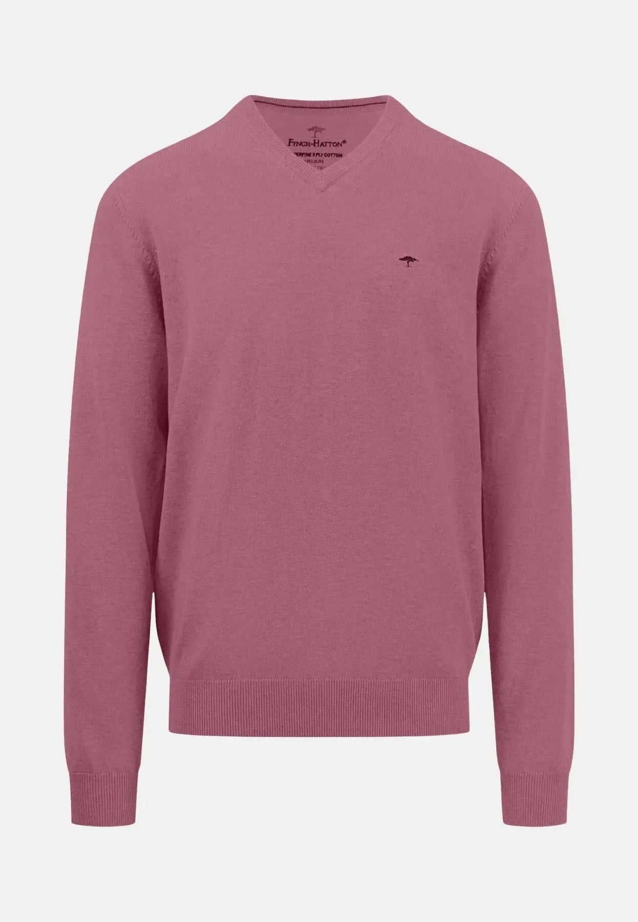 This casual fit v-neck superfine cotton knit is a wardrobe staple. Made from superfine knit soft cotton with a thin ribbed neck and ribbed cuffs and hem it is perfect for both the office and home and is finished with our iconic Fynch-Hatton Acacia tree logo embroidery on left crest.
