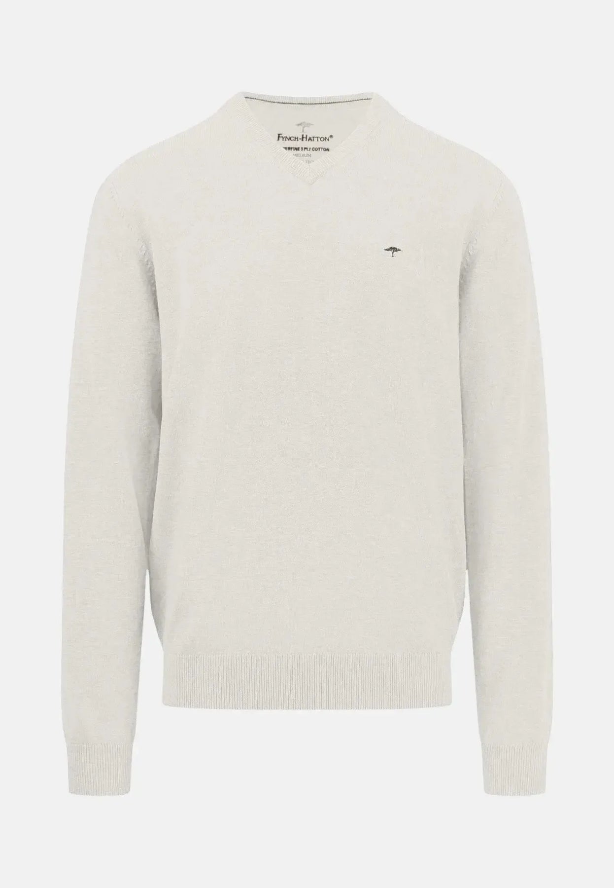This casual fit v-neck superfine cotton knit is a wardrobe staple. Made from superfine knit soft cotton with a thin ribbed neck and ribbed cuffs and hem it is perfect for both the office and home and is finished with our iconic Fynch-Hatton Acacia tree logo embroidery on left crest.