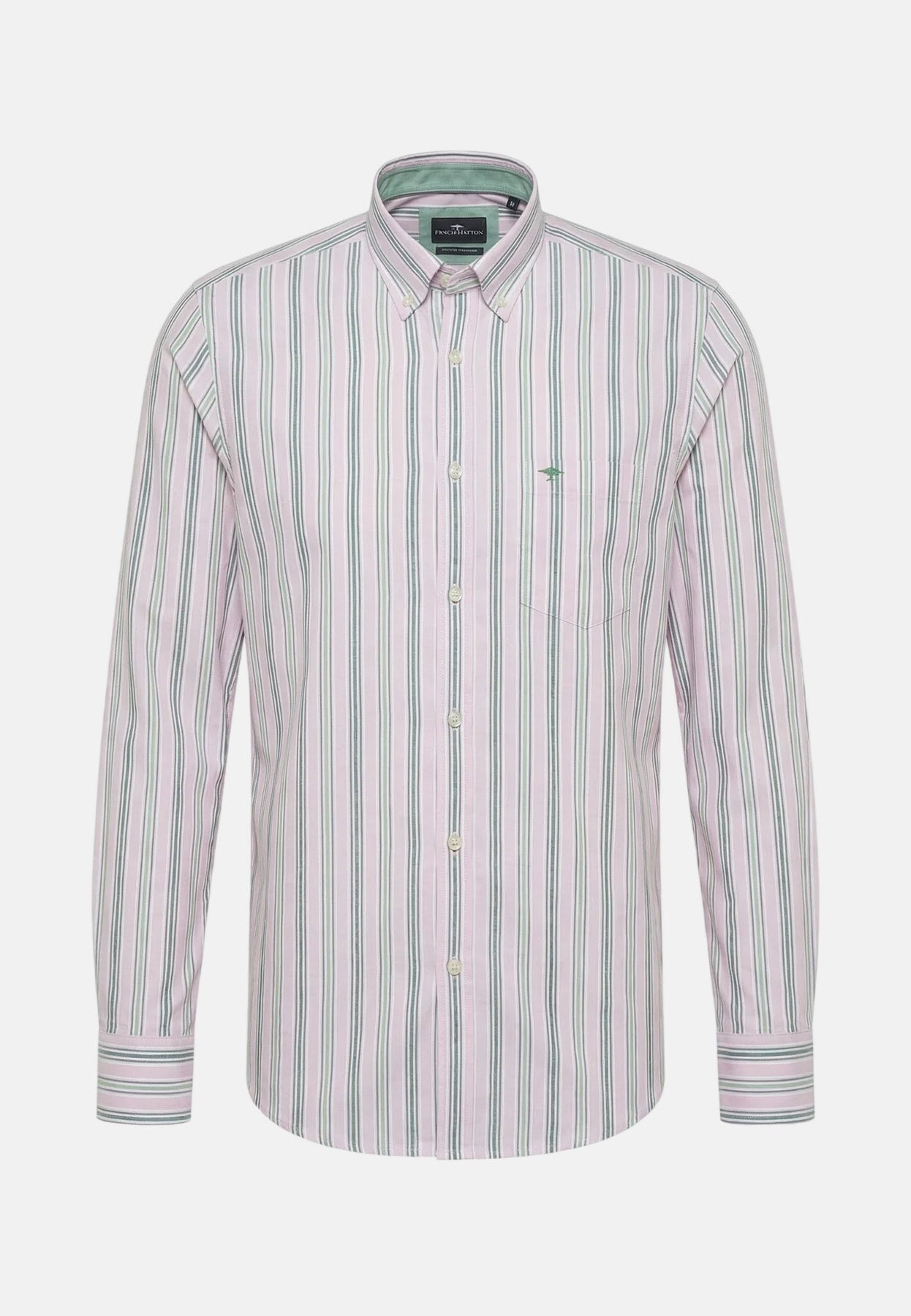 Long-sleeved shirt in a casual fit with a classic button-down collar and subtle all-over striped print. The clean design gives the shirt a timeless, sophisticated look, suitable for both everyday wear and the office. The high-quality cotton ensures a comfortable feel and excellent comfort. The signature FYNCH-HATTON embroidery on the chest completes the look.