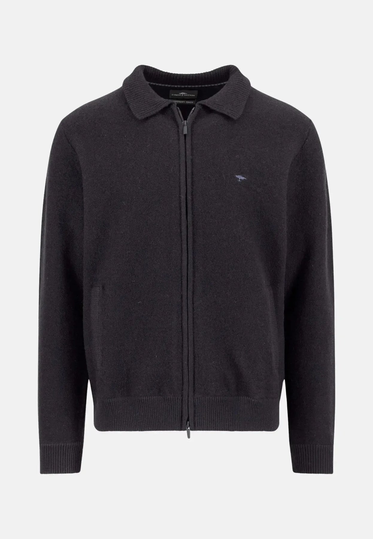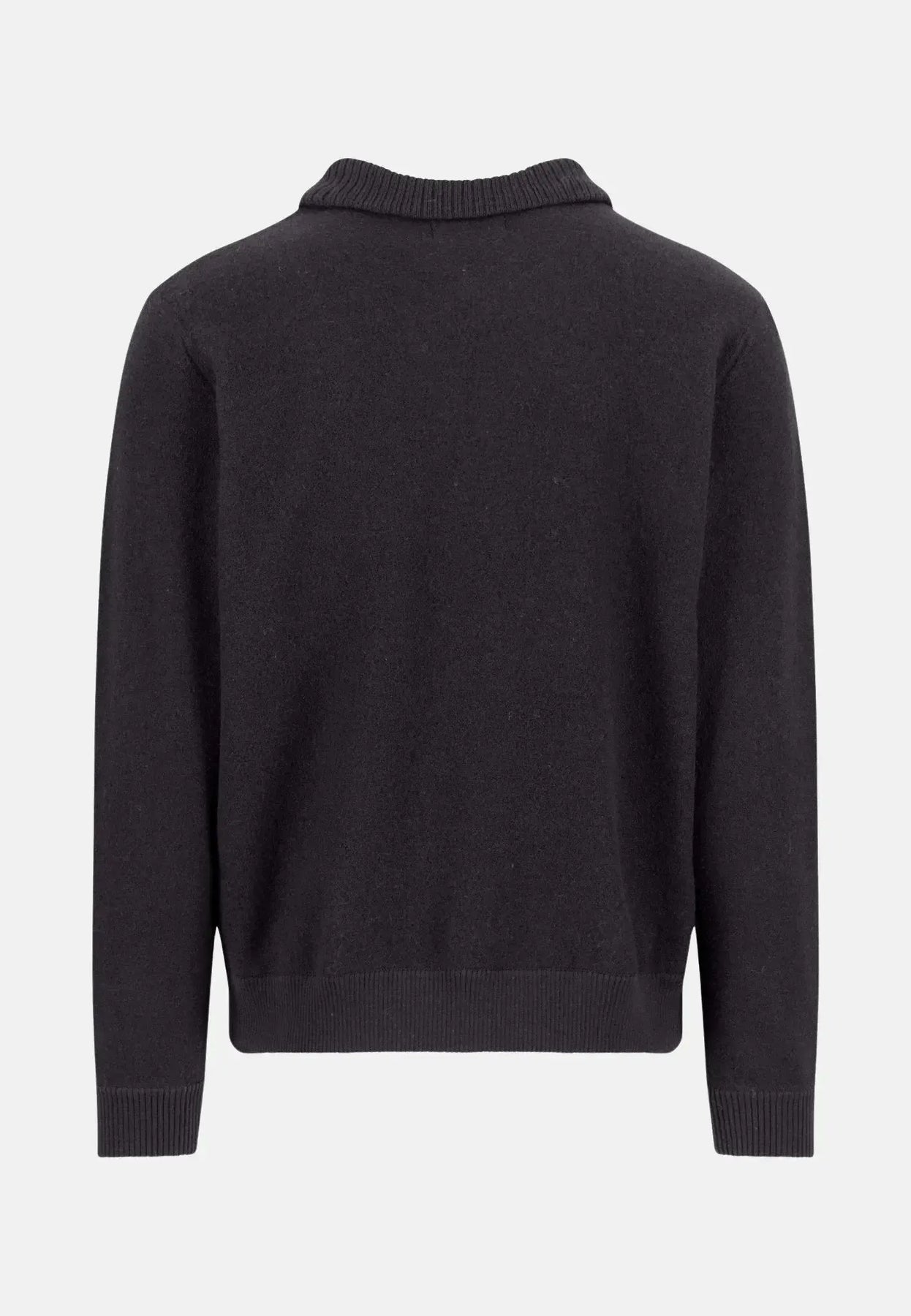 fynch-hatton-Boiled Wool Polo Collar Cardigan Charcoal