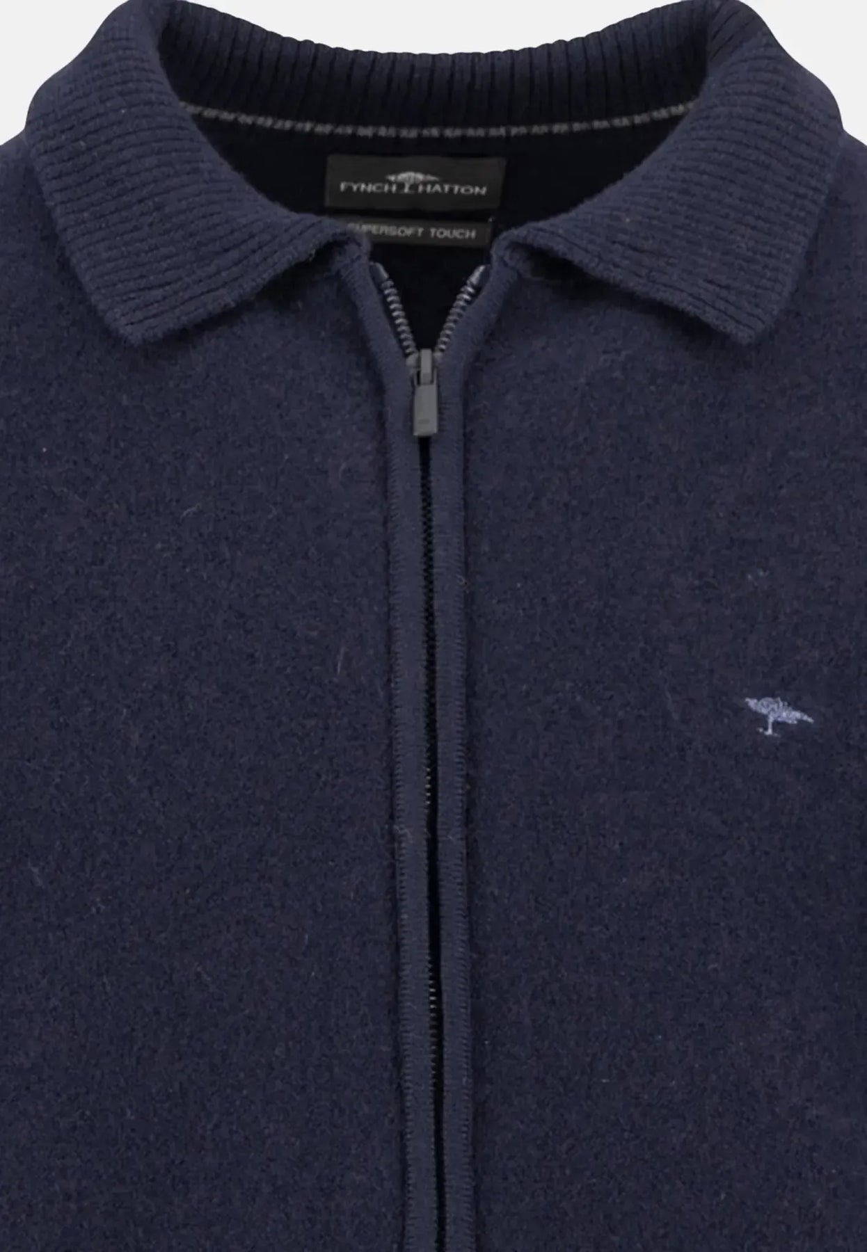 This cardigan combines classic style with exceptional comfort. The polo collar and full-length zipper give the piece a sophisticated, timeless look. Ribbed cuffs and hem ensure a great fit. Crafted from 100% wool, the jacket impresses with its natural warmth and pleasantly soft feel. The discreetly knitted pockets and fine logo stitching on the chest stylishly round off the design – ideal for the transitional seasons or as a warming addition on chilly days.