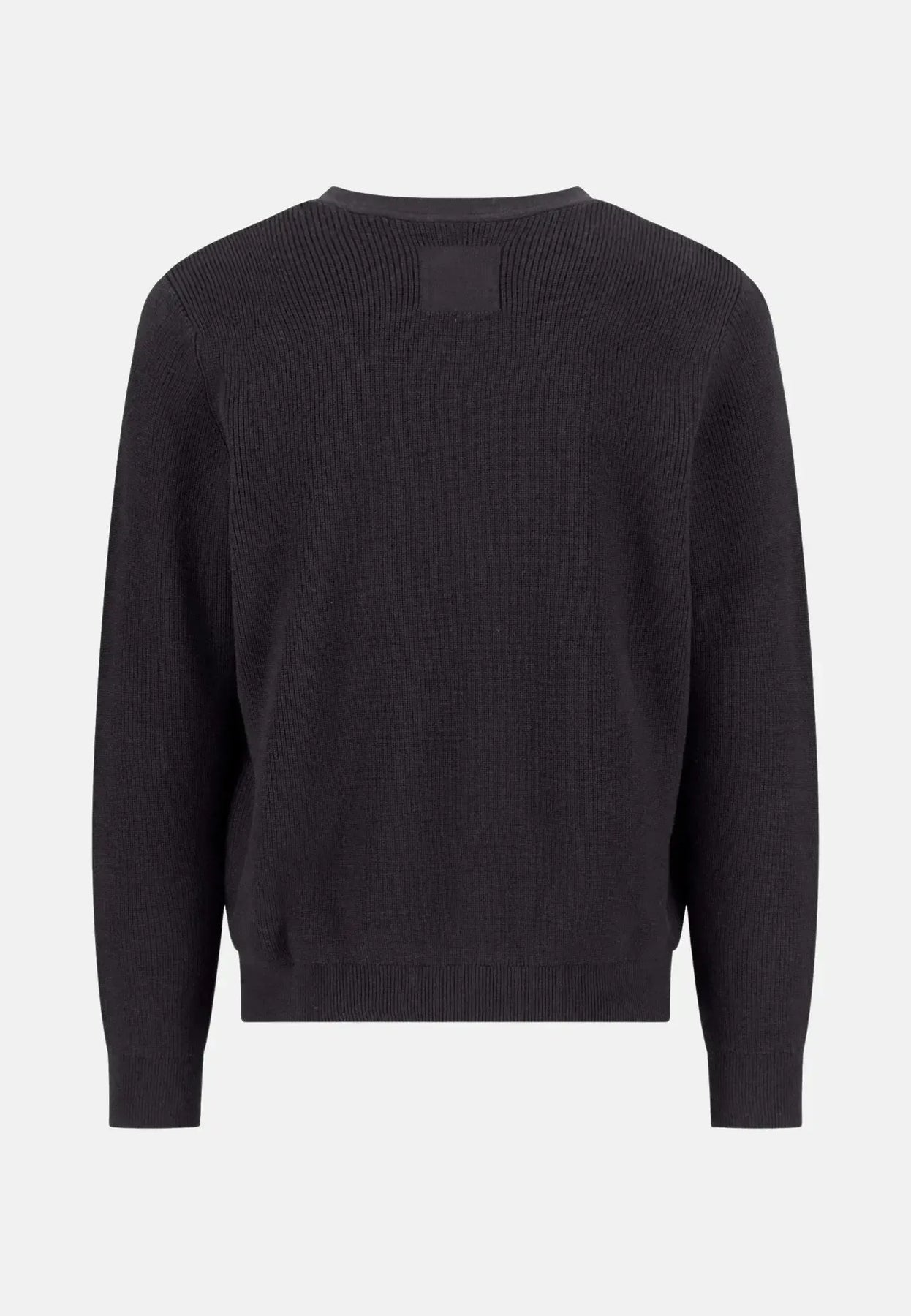 The combination of a smooth front and coarsely structured sleeves gives this cardigan a modern look with a sporty touch. The high-quality blend of cotton and wool ensures pleasant warmth, a soft feel, and reliable shape retention. The deep V-neck, full-length button placket, and two patch pockets underscore the casual character of the design. Versatile and ideal for relaxed everyday looks.