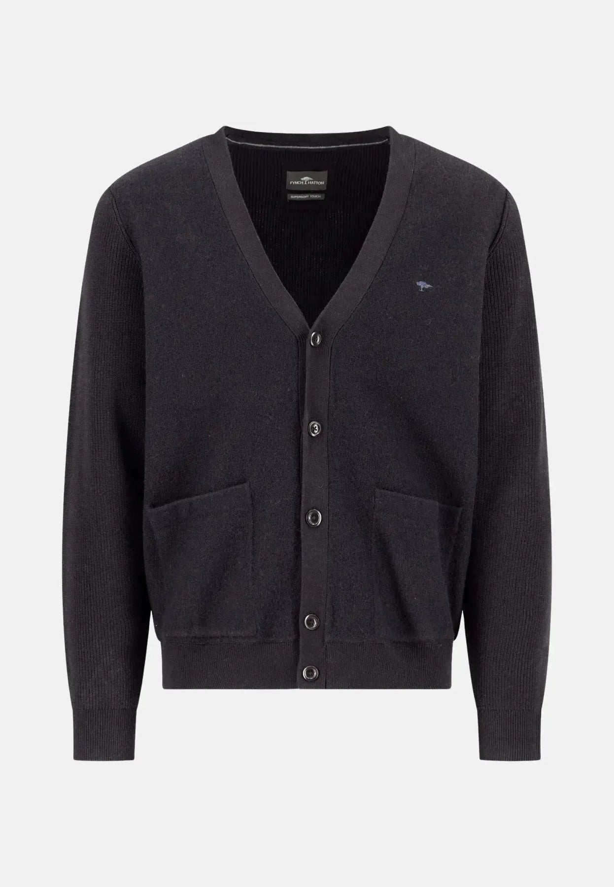 fynch-hatton-Cotton Wool Buttoned Cardigan Charcoal