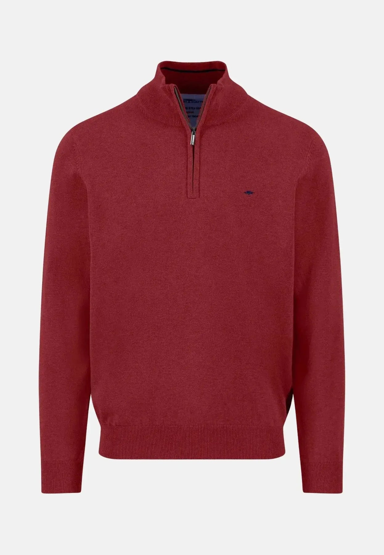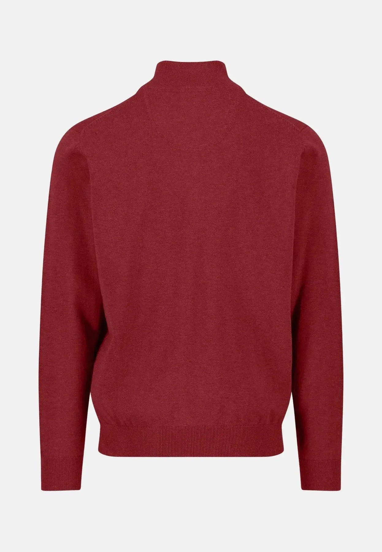 Fine Knit Cotton 1/4 Zip Garnet Red