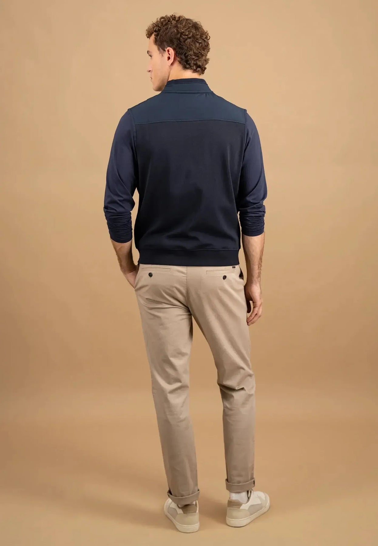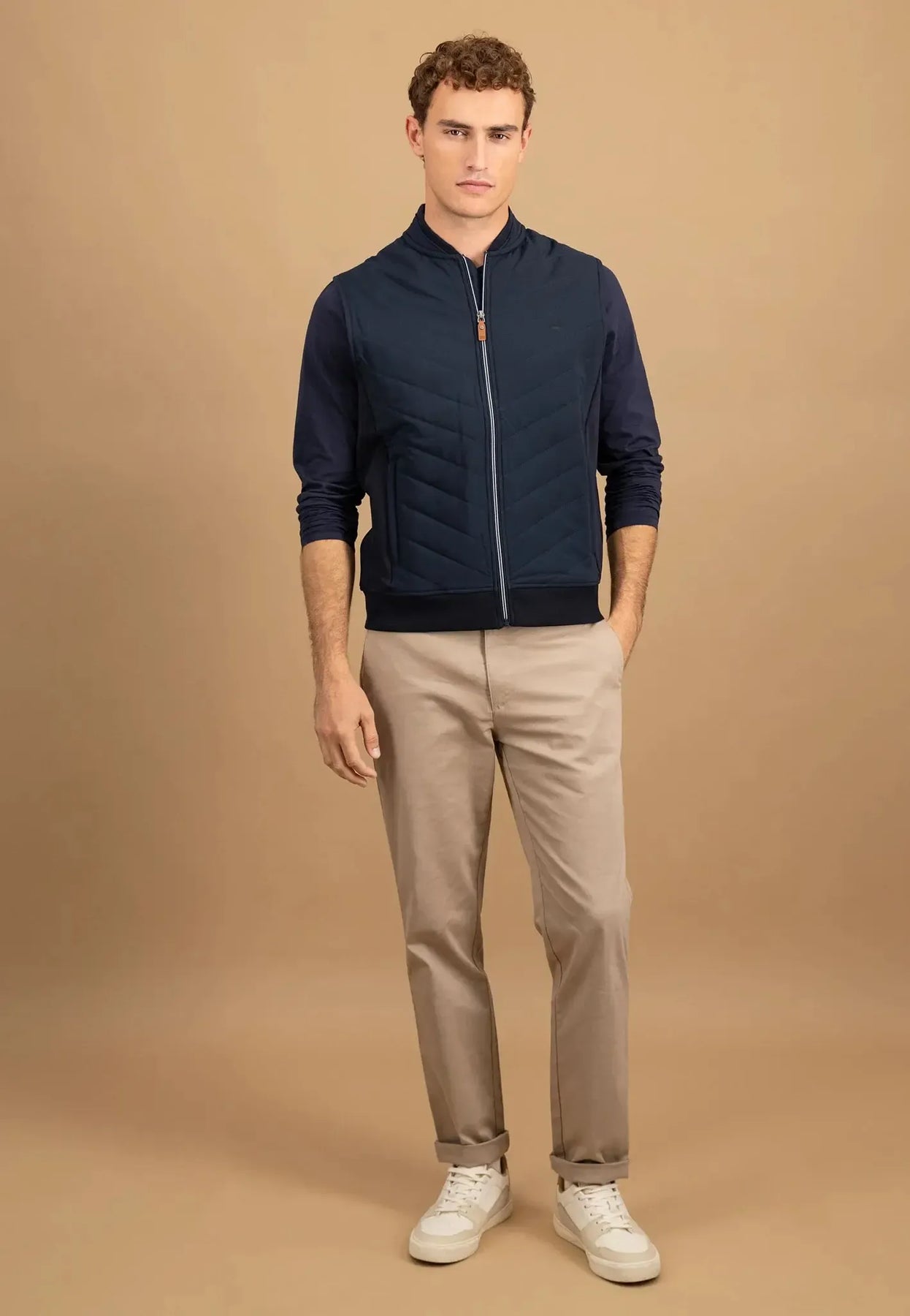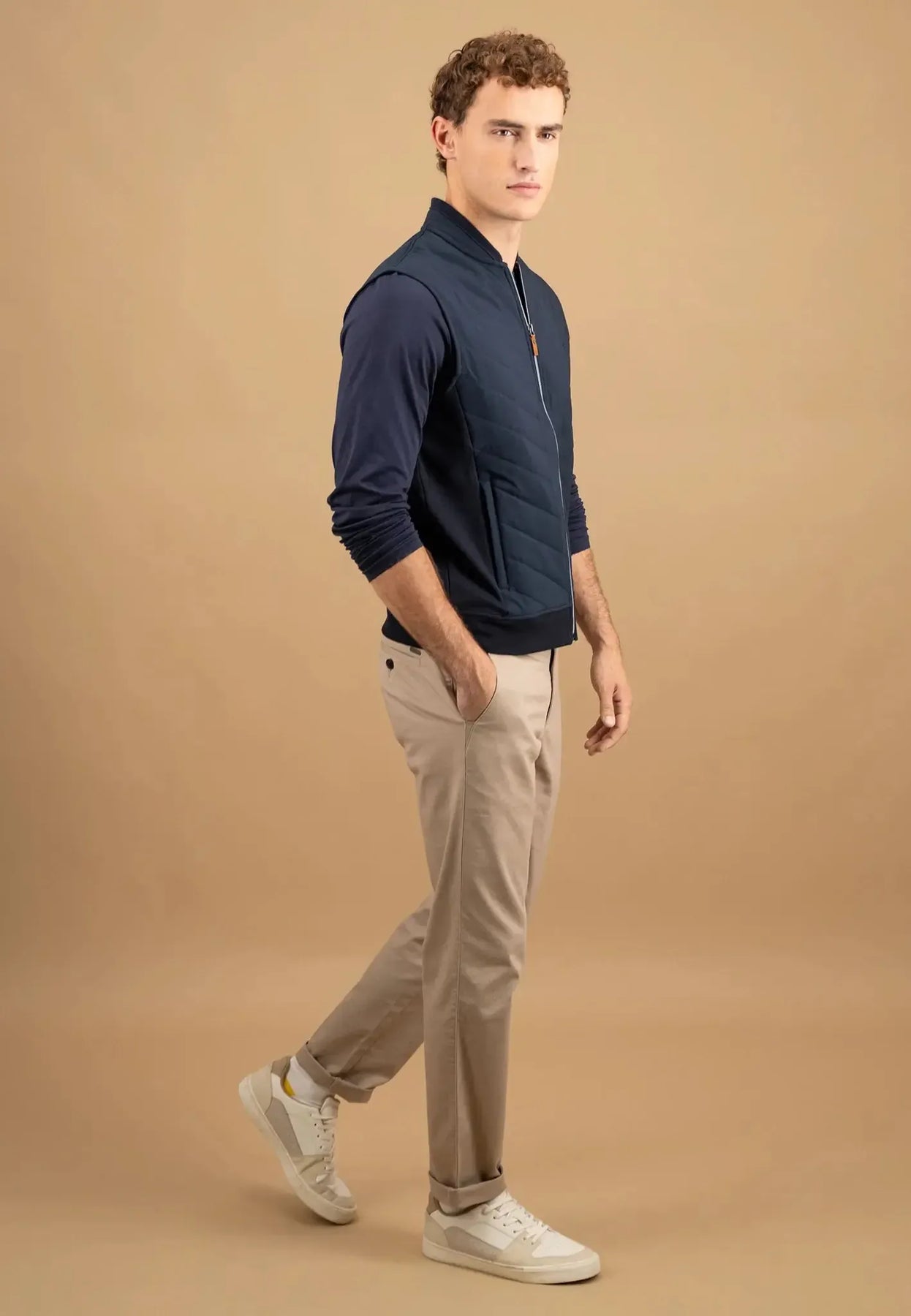 This quilted vest is the perfect addition for active days in changeable weather – lightweight, flexible, and modern in design. The stretchy material blend ensures optimal freedom of movement and comfortable wear, while the light padding provides reliable warmth. The stand-up collar, full-length zipper, and practical pockets make this vest a functional companion for sports, leisure, or transitional outfits. Versatile in combination – whether over a shirt, sweater, or hoodie.