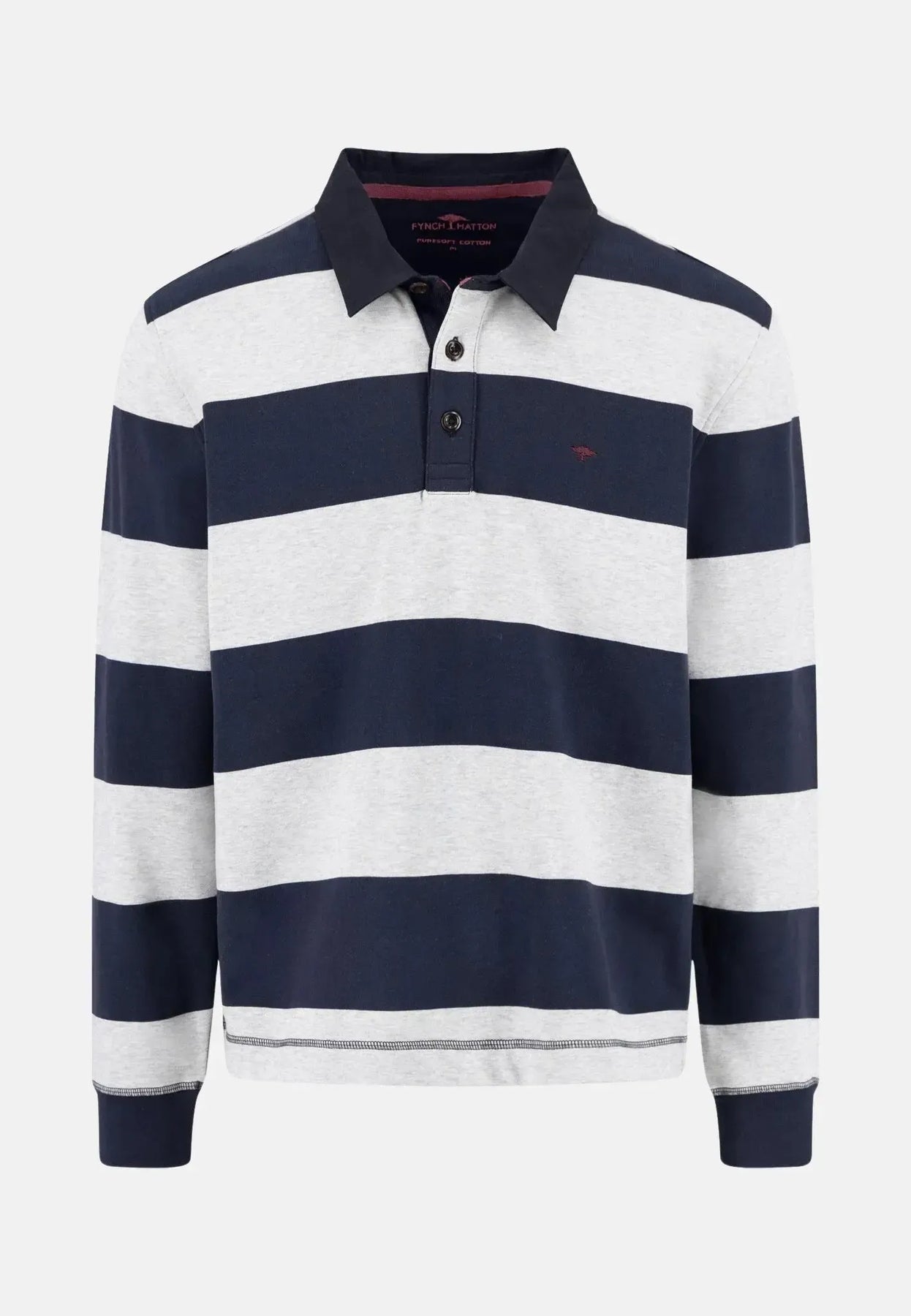 fynch-hatton-Striped Rugby Collar Sweat Navy