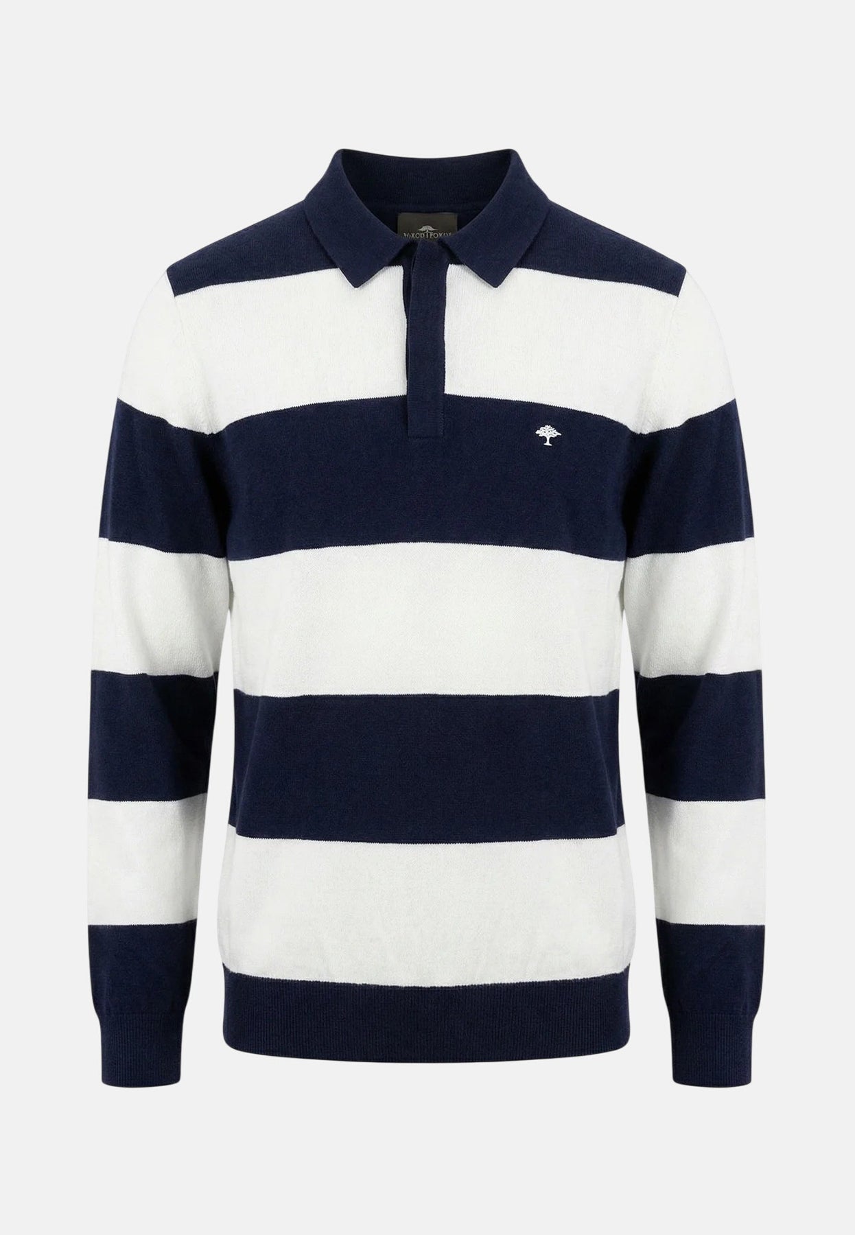 This long-sleeved polo shirt combines the sporty appeal of a classic with the lightness of a summery knit. The high-quality cotton-linen blend ensures a pleasantly airy feel and a natural texture. Striking block stripes add a modern, nautical touch, while ribbed cuffs and hem provide a neat fit. Whether paired with chinos or denim, it's a versatile companion for stylish casual looks.