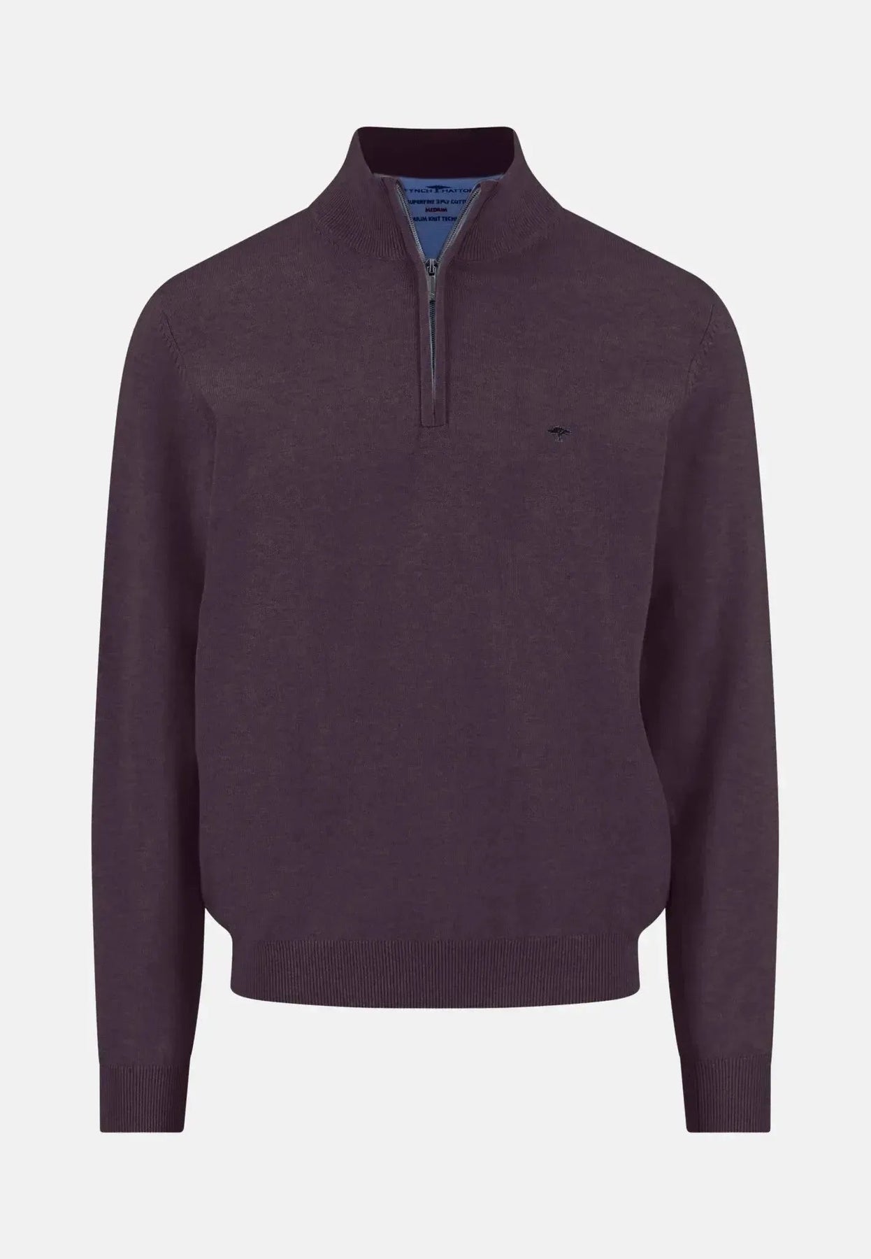 The sporty 1/4 zip stand collar gives this knitted sweater a distinctive look and underlines its casual character. Made from 100% soft cotton, it offers exceptional comfort and breathability – ideal for transitional weather or cool days. The finely textured knit provides a premium feel and makes it a versatile companion for everyday wear. Elasticated cuffs and a relaxed fit complete the functional design, while the subtle FYNCH-HATTON logo on the chest adds a stylish touch.