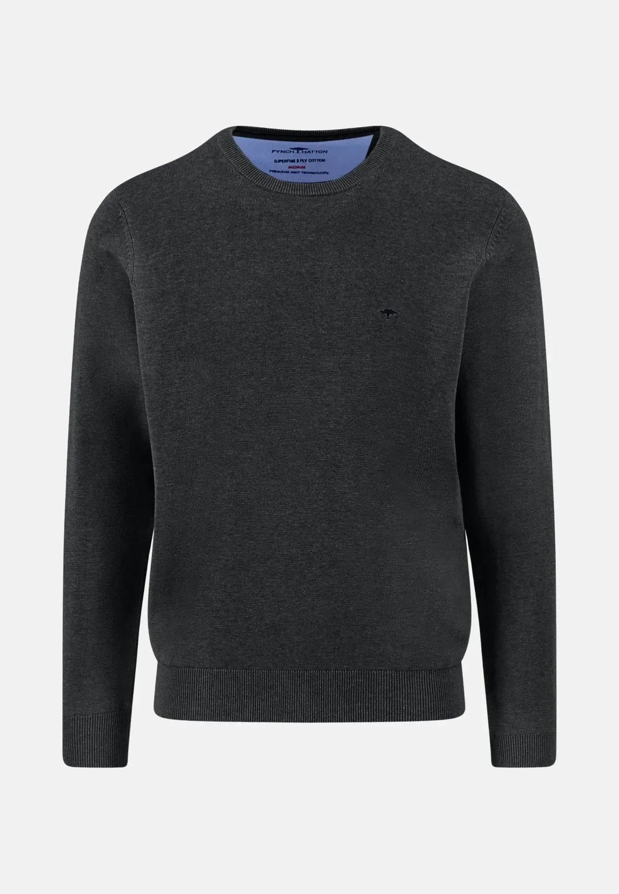 Lightweight, versatile, and comfortable on the skin – this sweater is your ideal companion for every season. Crafted from 100% cotton, it offers a particularly soft feel and, thanks to the fine knit, creates a neat, slim silhouette. The classic round neck, solid color design, and subtle FYNCH-HATTON logo detail on the chest make it a stylish everyday staple. Whether worn over a shirt, with a T-shirt, or on its own – this sweater combines comfort and style.