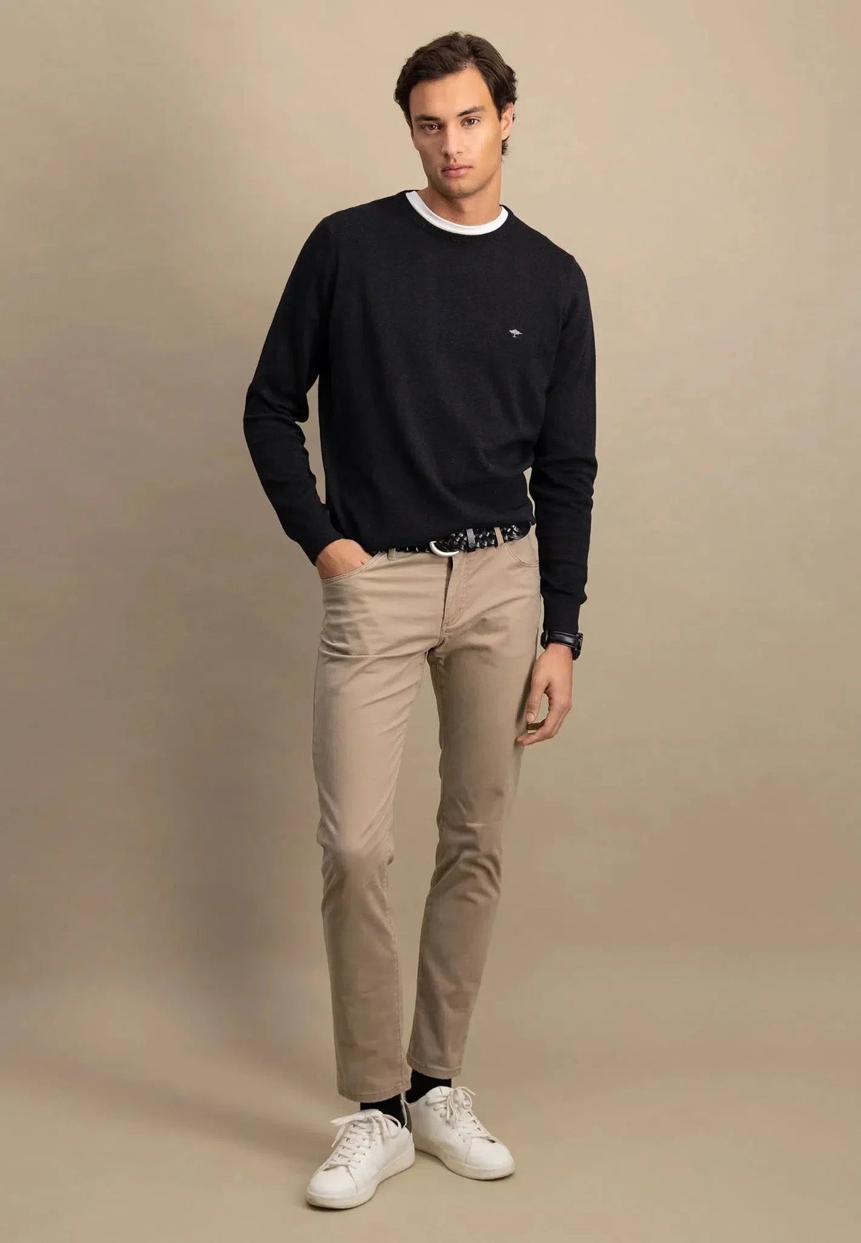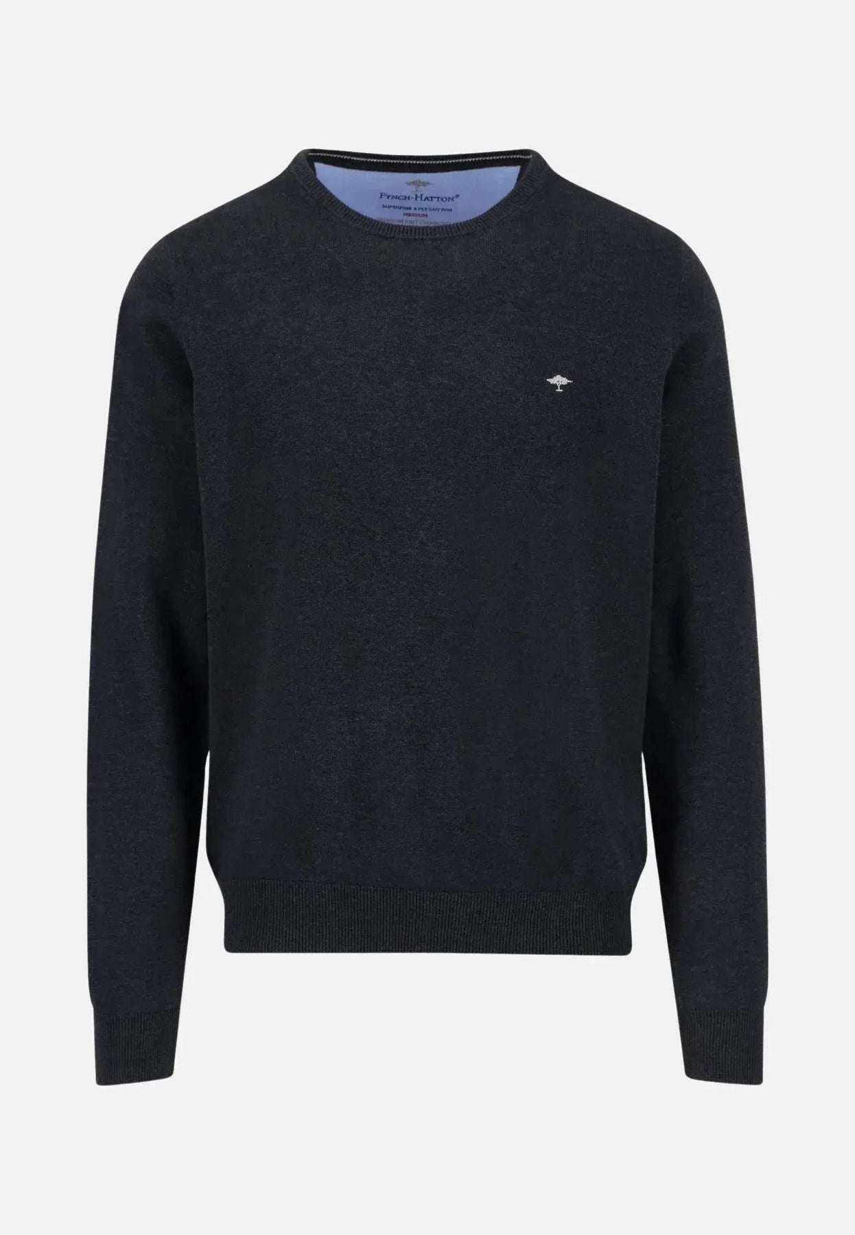 This casual fit crewneck cotton knit is a go-to staple for your wardrobe. Made from fine knit soft cotton with a thin ribbed neck and ribbed cuffs and hem it is perfect for both the office and home and is finished with our iconic Fynch-Hatton Acacia tree logo embroidery on left crest.