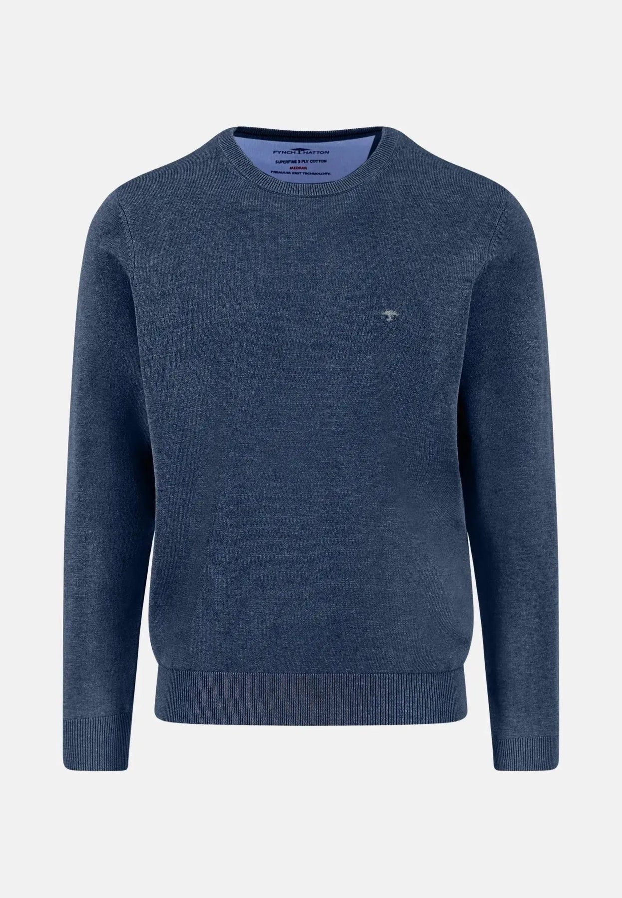 Lightweight, versatile, and comfortable on the skin – this sweater is your ideal companion for every season. Crafted from 100% cotton, it offers a particularly soft feel and, thanks to the fine knit, creates a neat, slim silhouette. The classic round neck, solid color design, and subtle FYNCH-HATTON logo detail on the chest make it a stylish everyday staple. Whether worn over a shirt, with a T-shirt, or on its own – this sweater combines comfort and style.