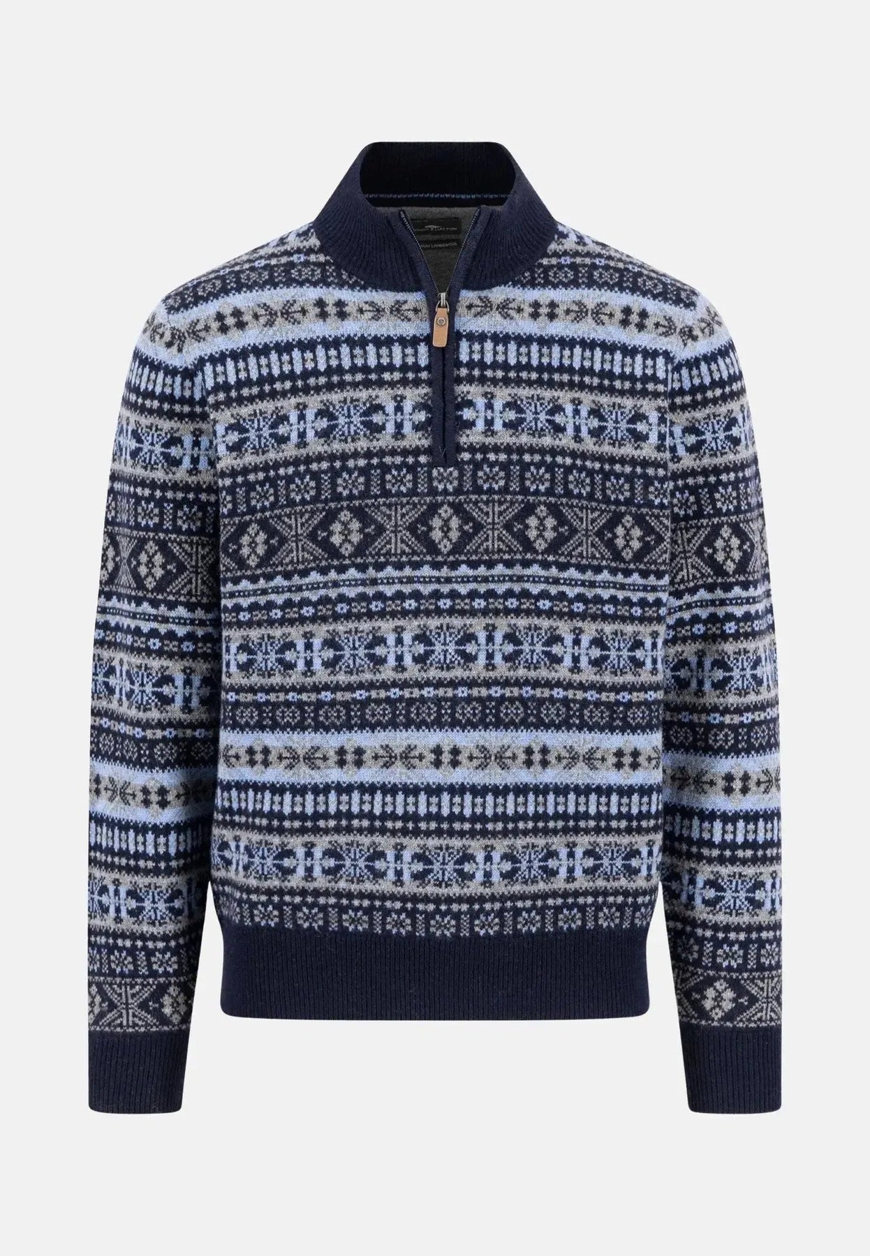 Lambswool Jacquard 1/4 Zip Knit Navy