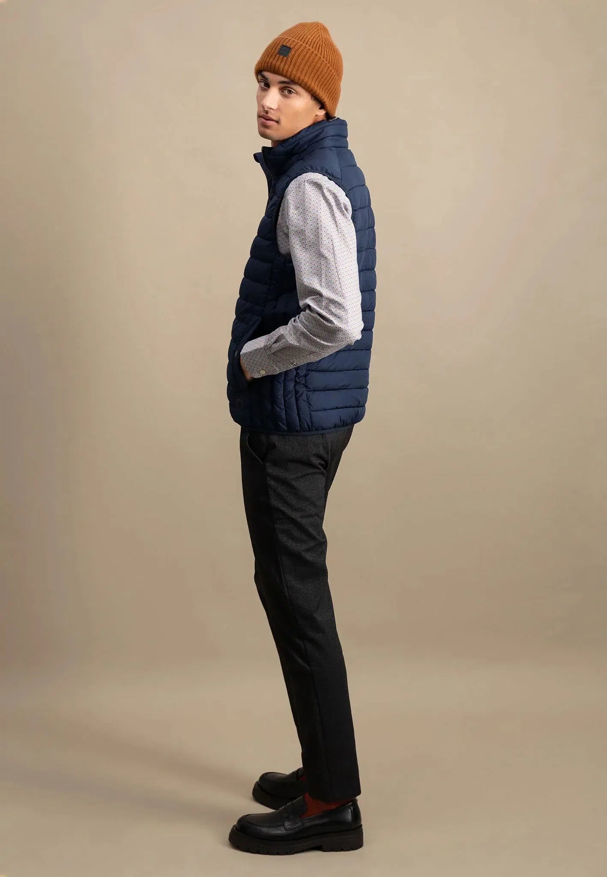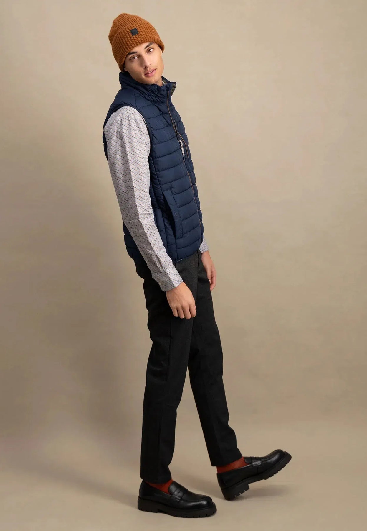 This classic light weight gilet is a perfect transitional piece for you wardrobe. Wear it over a sweater or blouse for a casual look or combine it with a long-sleeved shirt for extra warmth and style. It is finished with a contrast zip and zipped crest pocket (not shown in the image) and Fynch-Hatton branding in the bottom corner.