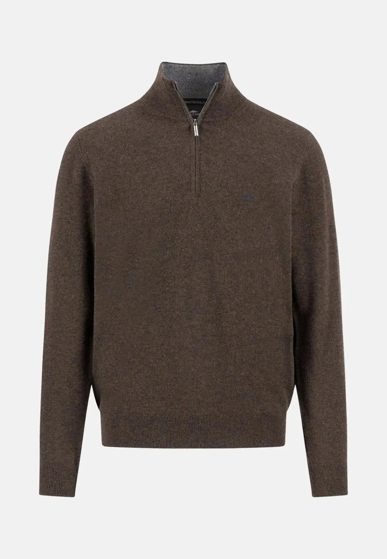 Merino Wool Cashmere 1/4 Zip Knit Dark Chocolate
