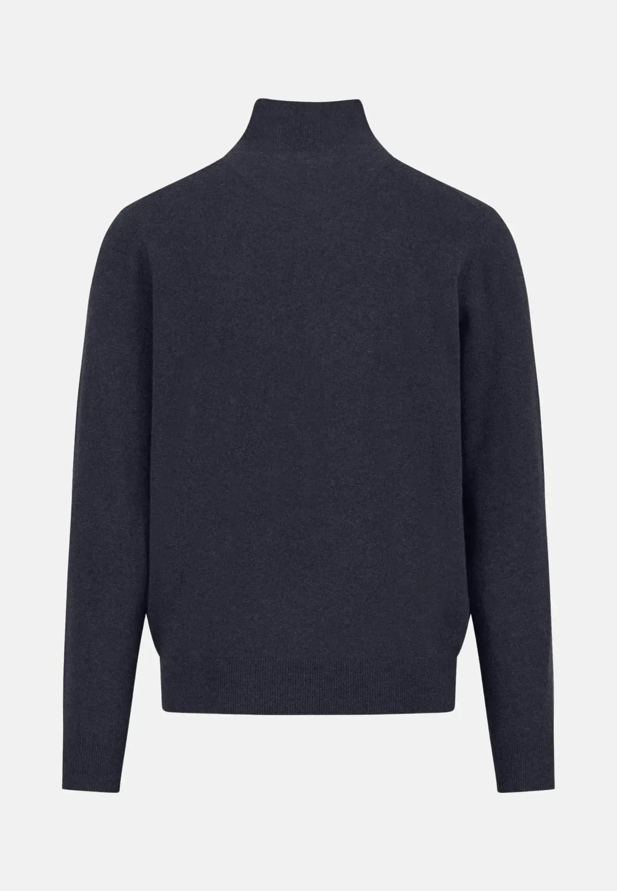 The classic zip-up sweater collar gives this sweater a sporty yet elegant touch and allows for versatile wearing options. The high-quality material blend of 90% wool and 10% cashmere offers a particularly soft feel and pleasant warmth. Ribbed cuffs and hem ensure a snug fit and complete the design. The subtle logo on the chest adds a stylish accent. Perfect for sophisticated casual outfits with a high level of comfort.