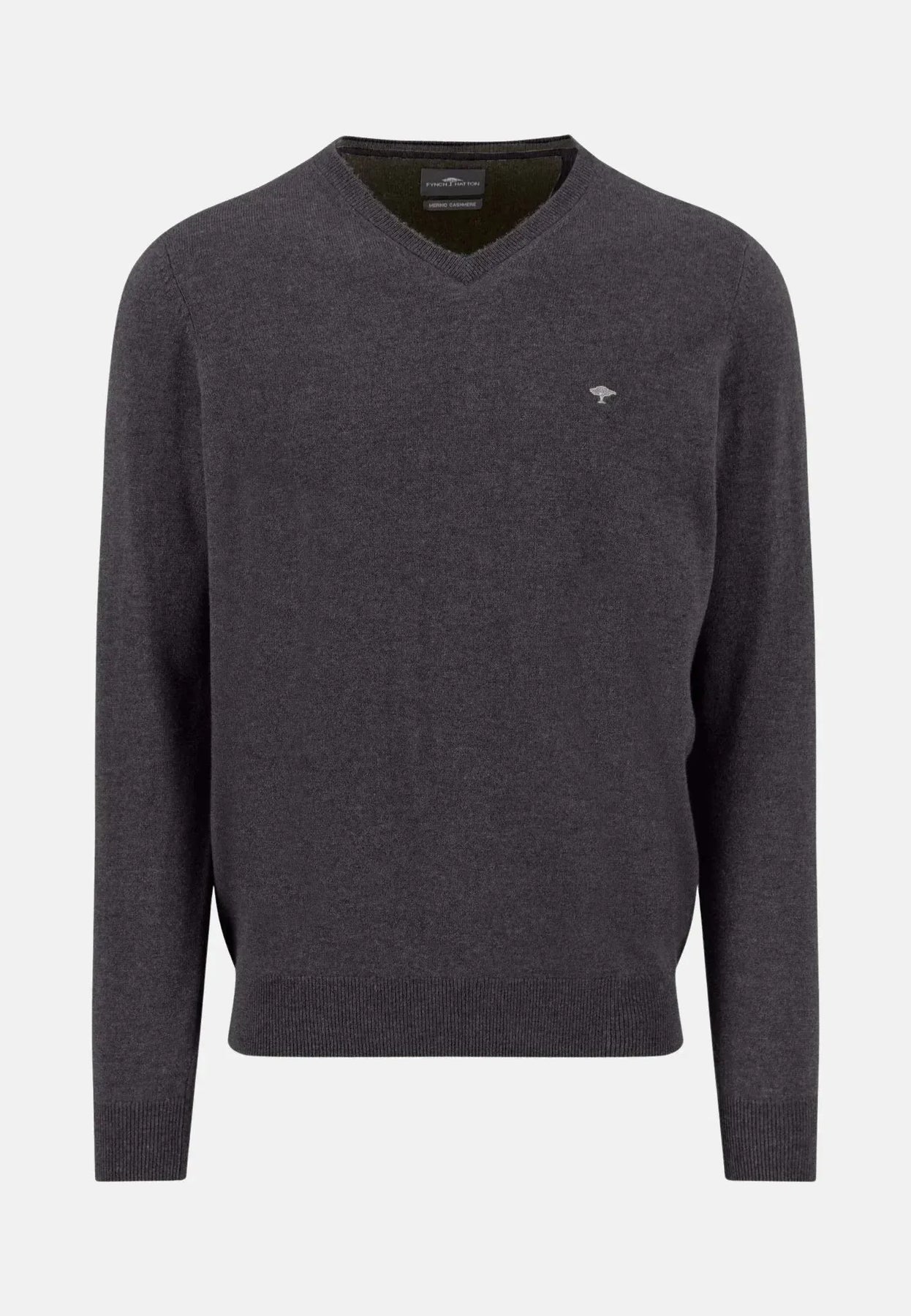 Merino Wool Cashmere V-Neck Knit Charcoal