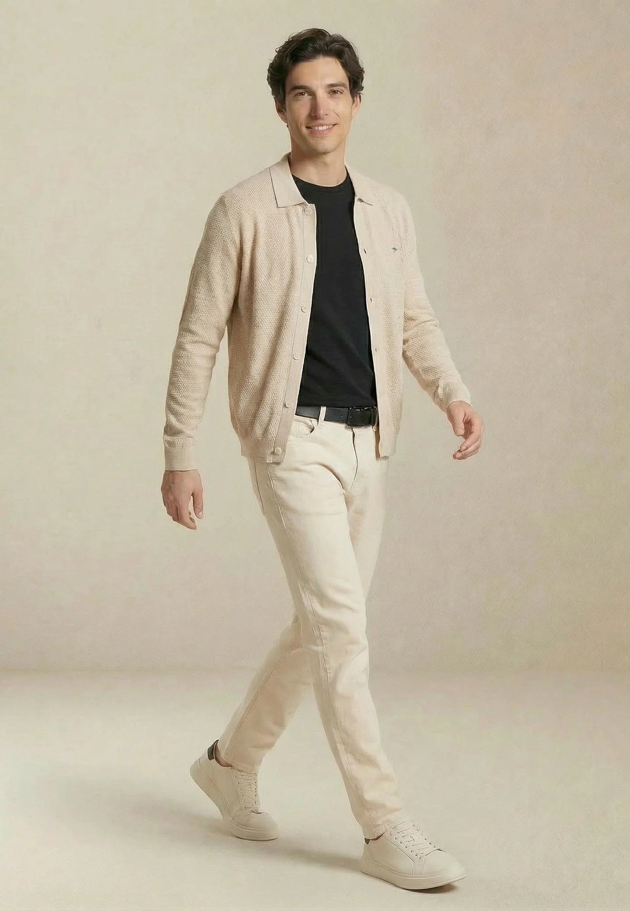 This cardigan, crafted from a high-quality cotton blend, combines timeless style with exceptional comfort. The fine knit feels soft against the skin and ensures a polished appearance. The polo collar and full button placket lend the design a classic touch, while the subtle logo embroidery stylishly completes the look. Thanks to its solid color, the cardigan is incredibly versatile – ideal for the office, everyday wear, or smart casual outfits.